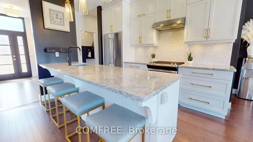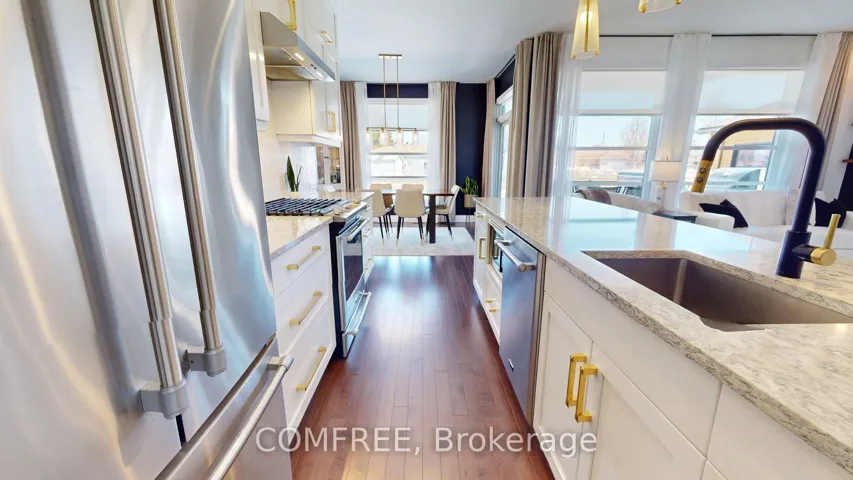 +"PublicRemarks": "This immaculate well maintained cozy home with approx 3300 sq.ft located in the prestigious Berczy community at Kennedy/16th ave.. An unobstructed south-facing view ensures the home receives consistent, direct sunlight from morning to evening. Just minutes from top-ranked Beckett Farm Public School and Pierre Elliott Trudeau High School. An interlocking stone/glass staircase at the front walkway leads to a welcoming foyer that opens into an airy, open concept layout with soaring 9-foot ceilings on both the main and second levels. The main floor showcases a modern kitchen featuring a gas stove and upgraded finishes, including stainless steel appliances, granite countertops, and extended centre island providing ample space for both casual dining and entertaining. Upstairs, the home is thoughtfully designed for family comfort, featuring four spacious bedrooms with 2 ensuites and a study room. The fully finished basement extends the living space even further, featuring a separate room used as a bedroom with window. A practical, spacious storage room in basement allows for organized, dust-free storage. A full bathroom with sauna, a modern wet bar with quartz countertops with 2 b/I fridges , and a spacious recreation area walk out directly to the yard. Additional highlights included w/ low maintenance interlocking backyard with a big shed and all security camera, making this move-in-ready home perfect for families seeking comfort and access to top-ranked school."