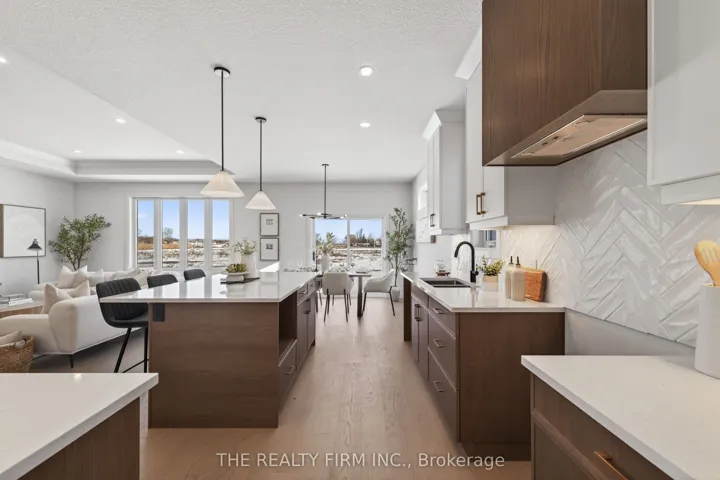 +"PublicRemarks": "Twin gables w/New England shake accents, a -column portico, & full brick façade w/a strong architectural presence, and an interlock walkway w/covered veranda. The entry is defined by a front door w/ soldier windows, a foyer finished in tile w/a 4-panel closet system. A formal dining room features elevated ceiling height & wide-plank hardwood flooring, transitioning into the living room anchored by a corner gas fireplace w/hearth surround & large four-panel window. The kitchen is design features a three-stool breakfast bar w/pendant lighting, granite countertops, recessed twin sinks, five-burner gas range, three-door refrigerator w/ice & water, and a full-height pantry wall. Pot lighting enhances the clean lines, while the adjacent eating area incorporates architectural detailing, built-in bench seating, & a passage door w/transom. A two-piece powder room completes the main level. A straight-run staircase w/oak railings & curved inlay leads to the second level. The landing continues in hardwood & connects to a linen closet & dedicated laundry room. The primary suite is proportioned for comfort, w/a three-sided walk-in closet & a three-piece ensuite w/oversized tile, double-wide glass shower, rain head fixture, & a European-style vanity w/integrated storage. Bedrooms two & three are configured w/double-width closets & share a four-piece Jack & Jill bathroom w/a moulded tub, tile surround & extended vanity. The lower level expands the living envelope w/a multifunctional recreation room finished in wide-plank flooring, flat ceilings, pot lighting, double windows, & an electric fireplace. A three-piece bath w/walk-in shower, oversized tile, & contemporary vanity, alongside a storage area w/built-in counter, shelving, & utility sink. The exterior rear yard is fully fenced & designed for seasonal use, offering a patio w/pergola, hot tub, & storage shed. The garage includes windows and interior access, completing a cohesive executed design. 24 hour irrev on all offers"