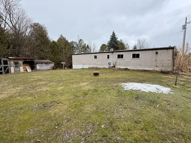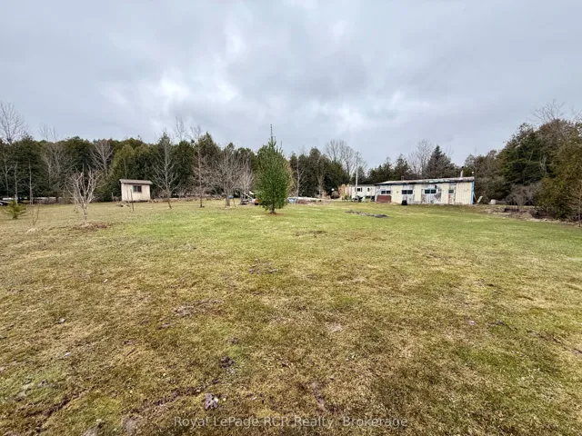 +"PublicRemarks": "This 2.67 acre parcel is situated east of Elmwood, offering a rare lot size for the immediate area. The lot is predominantly level and features a creek traversing the rear portion of the acreage. The property currently accommodates a mobile home but presents a viable footprint for a new residential build. The existing residence features an open-concept kitchen and living area, configured with three bedrooms and one 4pc. bathroom with integrated laundry facilities. The eat-in kitchen has been updated with modern cabinetry. Mechanical and structural improvements include a high-efficiency electric heat pump with a heat coil for dual f/a heating and central air conditioning, a newer water heater, updated flooring, and exterior decking. The roof has also been recently treated with a protective coating. This property serves as either a move-in-ready entry-level residence or a strategic building site for those seeking rural utility with proximity to Hanover and Walkerton. Shop air compressor and tools are negotiable."