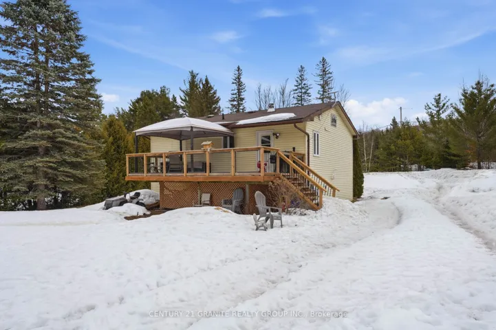 +"PublicRemarks": "If you have been looking for a property that feels like home the moment you walk in, this is it. Welcome to this beautifully updated 3-bedroom home. Set on a generous 1.03 acre extremely level lot, the landscaped yard provides plenty of space for outdoor living, gardening, and family enjoyment. The property also features a sizeable garden shed and fenced garden with raised garden beds. The driveway allows ample parking for up to six vehicles. Inside, the home boasts stylish modern finishes throughout including quartz countertops, large chefs island with seating, stainless steel appliances and an exquisite coffee bar creating a fresh and inviting atmosphere. Step outside to a large, spacious back deck-ideal for entertaining, BBQing, relaxing, or soaking in the peaceful surroundings with glass railings. The fully finished basement features the additional bedroom, large rec room, laundry room and utilities as well as a spacious mudroom. Large windows on this level complete this bright living space. Convenient services include garbage and recycling pickup, along with year-round access on a municipally maintained road, adding ease of living. Located just 7 minutes from downtown Bancroft, this property offers privacy and accessibility-close to amenities while still enjoying the space and tranquility of rural living. A fantastic opportunity for families, retirees, or anyone looking to enjoy the best of both worlds."
