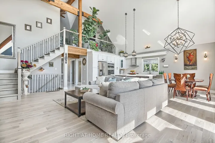 +"PublicRemarks": "Experience exceptional year-round waterfront living on Lake Scugog in this custom-built home, ideally located in the heart of Kawartha Lakes and connected to the Trent-Severn Waterway. Offering over 2,700 sq ft of beautifully finished living space, this four-season property is perfect for retirees, families, or buyers seeking strong investment and rental potential-just 1.5 hours from Toronto. The home showcases a bright, open-concept design with soaring vaulted ceilings, exposed beams, engineered hardwood floors, and expansive windows capturing breathtaking lake views. The great room features a cozy propane fireplace and walkout to a spacious cedar deck-ideal for entertaining or enjoying peaceful waterfront mornings. The modern kitchen is thoughtfully designed with a large granite island, built-in appliances, beverage and wine fridges, designer lighting, and elegant finishes throughout. Two generous main-floor bedrooms provide convenient one-level living, while the private loft-style primary suite offers a serene retreat with panoramic lake views, vaulted ceilings, a sitting area, and a spa-inspired ensuite complete with glass shower and soaker tub. The fully finished walkout basement expands the living space with a large recreation room, kitchenette with island, additional bedroom, 3-piece bath, and direct access to a stone patio and lakeside yard-perfect for extended family, guests, or income-generating rental use Enjoy boating, fishing, swimming, skating, and snowmobiling right from your property. Walking distance to Sand Bar Beach and a public boat launch, and just minutes to Port Perry and Lindsay for shopping, dining, and healthcare. A rare opportunity offering waterfront living, year-round enjoyment, and excellent investment potential."