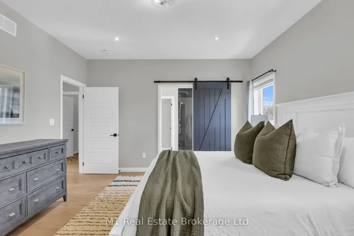 +"PublicRemarks": "Welcome to this stunning custom-built home in the heart of Fergus, offering over 2000 sq ft of beautifully designed living space where modern style meets farmhouse charm. Featuring 9 foot ceilings throughout, 3 spacious bedrooms and 3 baths, this home showcases meticulous attention to detail and high-end upgrades throughout. The open-concept layout is perfect for both everyday living and entertaining, highlighted by wide plank hardwood flooring and expansive windows that flood the space with natural light. The living room offers a cozy gas fireplace with custom wood shelving. The custom Sutcliffe kitchen is truly the heart of this home, complete with an impressive 11-foot island with breakfast bar, sleek finishes, and premium Café appliances. Upstairs, the primary retreat offers a serene escape, his-and-hers walk-in closets, and a spa-like ensuite featuring a soaker tub and a large glass shower. Step outside to a custom-built deck, ideal for relaxing or hosting, all set on a private street, offering a rare sense of calm and privacy in a charming small-town setting. A truly exceptional home combining comfort, craftsmanship, and location."