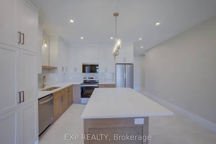 +"PublicRemarks": "Downsize without compromise with this gorgeous end unit townhome by Duimering Homes. Tucked at the end of Bedell Drive in Drayton, this newly built bungalow pairs low maintenance living with elevated finishes. A vaulted great room ceiling amplifies light and space (hello, extra windows and 9" ceilings) and centres around a cozy electric fireplace with wood mantle. The gourmet kitchen features quartz counters, custom full height cabinetry, stainless appliances, and an island flowing into the dining and overlooking the family room. Out back enjoy a covered back patio for easy indoor/outdoor living and partial privacy fence. Two generous bedrooms include a serene primary suite with walk in closet and spa inspired ensuite. Practical perks: main floor laundry/mudroom and an attached 2 car garage with a double wide paved driveway. With only one shared wall, added privacy, and a quiet, walkable location, this is single level living without sacrificing style, comfort, or sunlight."