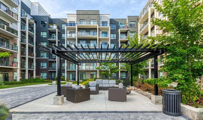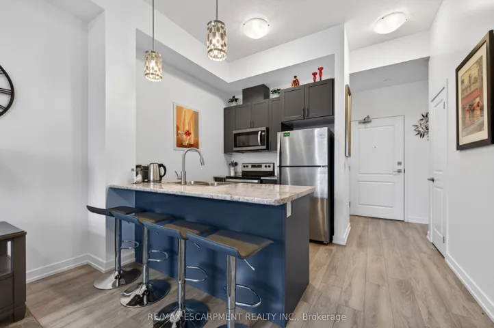 +"PublicRemarks": "Welcome to the penthouse level at one of Beamsville's most desirable buildings. This rare top-floor 1 Bedroom + Den condo offers complete privacy with no one above you, upgraded finishes throughout, and an oversized private balcony showcasing beautiful courtyard and escarpment views.Featuring 9 ft ceilings and a bright open-concept layout, the unit includes a spacious living room with direct balcony access, a modern kitchen with stainless steel appliances, a versatile den perfect for a home office, a generous bedroom, a 4-pc bathroom, and convenient in-suite laundry. Truly move-in-ready and designed for comfort. This unit includes 1 owned underground parking space and an owned locker, with condo fees covering common elements, insurance, geothermal heating & cooling, and more-keeping long-term costs low. Residents enjoy an impressive list of amenities: a stylish party room, full fitness center, dedicated bike storage, rooftop patio with panoramic views, and plenty of visitor parking. Located in the heart of wine country and steps to TD Bank, Sobeys, restaurants, parks, and award-winning vineyards. Just minutes to the future Beamsville GO Station and with quick access to the QEW, this is the perfect home for commuters, first-time buyers, downsizers, or investors seeking reliable rental potential. Penthouse living, unbeatable location, and a beautifully maintained building-your opportunity awaits."