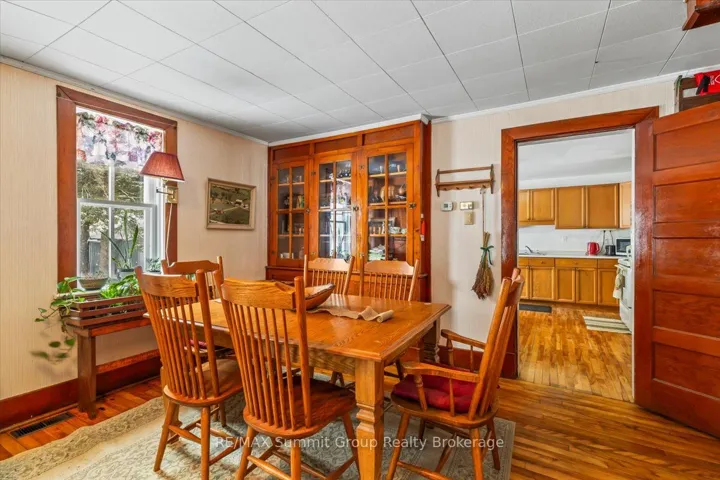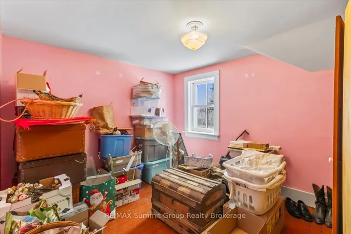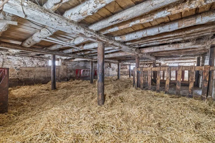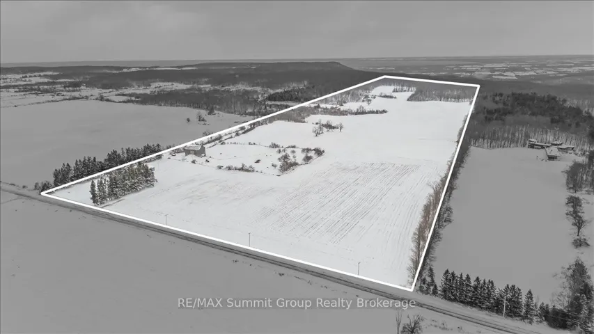 +"PublicRemarks": "Just over 100 acres only 15 minutes from Collingwood, offering approximately 60 to 65 workable acres, 5 acres of pasture, and 25 acres of excellent hardwood bush, with the balance made up of the home and outbuildings. The workable land is a combination of Listowel Silt Loam and Osprey Loam soils, both known for good drainage, strong nutrient holding capacity, and suitability for crops. The house is a solid red brick two-storey built around 1900 with about 1,600 sq ft of living space and features five bedrooms, a 3 piece main floor bathroom, and a 3 piece ensuite on the second floor, along with original hardwood floors, older windows, a metal roof, a covered front porch, and a back mudroom. The stone foundation with poured foundation addition is in good condition and the basement includes the laundry area, a cold room, and the forced air oil furnace with convenient exterior access. Outbuildings include a 20' x 20' garage with a concrete floor, a 30' x 60' drive shed with two large doors and a dirt floor, and a traditional bank barn with water. This is an excellent farm with a practical and workable setup, quality loam soils, useful buildings, and a farmhouse ready for its next chapter."