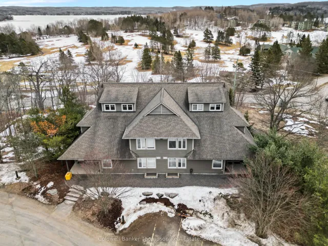 +"PublicRemarks": "This beautifully appointed condo offers a bright, open-concept layout that effortlessly connects the kitchen, dining, and living areas. Soaring ceilings draw your eye upward to the loft above, enhancing the sense of space while oversized floor-to-ceiling windows on two sides fill the home with natural light. At the centre of it all is the custom Cutter's Edge custom kitchen, thoughtfully designed with stainless steel appliances, a natural gas range, double wall ovens, and a peninsula with breakfast bar seating. Quartz countertops complete the space. The living room is warm and inviting, anchored by a natural gas fireplace. Step outside to the spacious balcony, an ideal place to enjoy morning coffee or summer dining. The main floor also features a beautifully designed primary suite with a generously sized closet and 3-piece ensuite. At the opposite end of the hall, a guest bedroom, a four-piece bathroom, and a laundry closet provide comfort and practicality. Overlooking the living room below, the loft provides a versatile bonus space that can easily function as an additional bedroom, home office, or retreat. A convenient five-piece bathroom on this level ensures plenty of space for visiting family and friends. Beyond the condo itself, owners enjoy access to over 300 feet of sandy private Hidden Valley beachfront on Peninsula Lake part of Huntsville's four-lake chain complete with a beach volleyball court and playground. Hidden Valley Highlands Ski Area and Club Link Mark O'Meara golf course initiation fees are covered should you choose to become a member. Situated across the road from Deerhurst Resort on a quiet dead-end street, this location allows you to easily walk to restaurants, the beach, ski hill, mountain biking and hiking trails, and more. Short-term rentals are permitted, subject to licensing with the Town of Huntsville. This is a fantastic low-maintenance option for year-round living or the perfect cottage alternative."