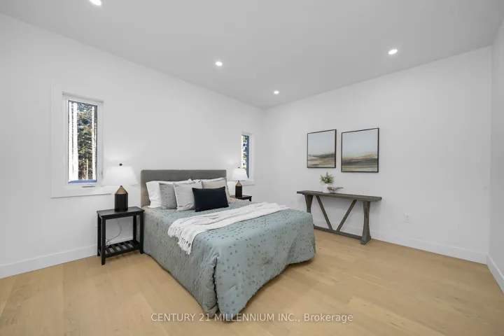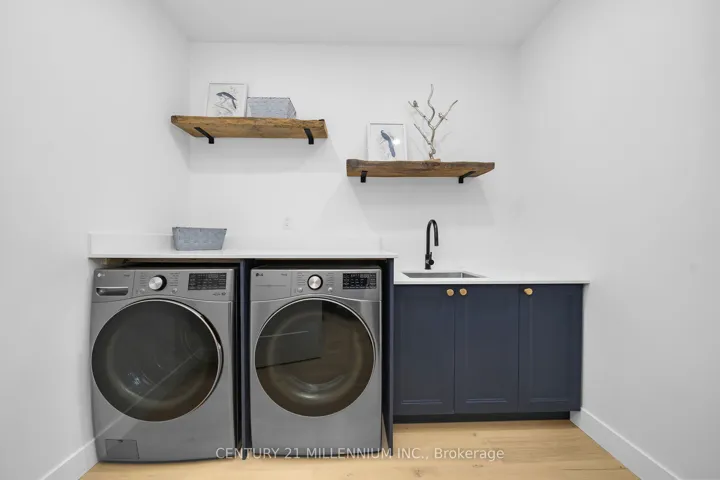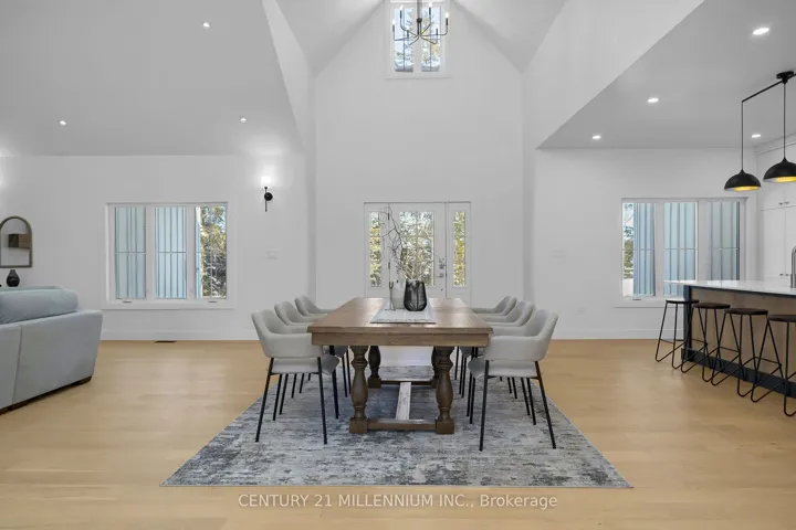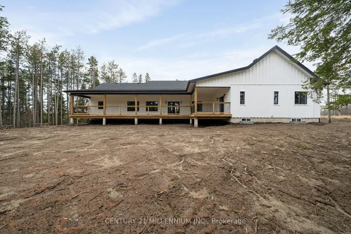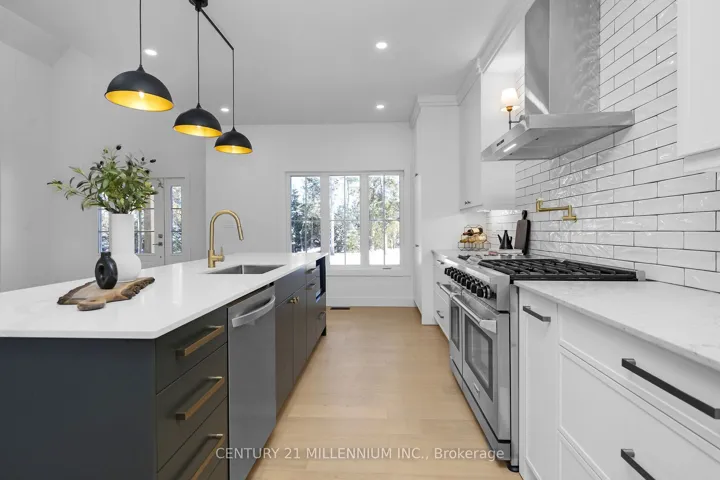 +"PublicRemarks": "When Modern Farm House is touched with elegance and sophistication you are presented with 5450 Fifth Line. This nearly 3000 sq ft custom bungalow is crafted to ensure the exterior meets the interior. Relaxed country warmth, with clean lines, soaring ceilings and thoughtful finishes throughout. You'll be captivated by the 1300 sq foot great room with 21' cathedral ceiling plus living, dining and kitchen all blended in harmony. The floor to ceiling fireplace focal point, is wrapped with built-ins and a hemlock barn beam mantle. The white oak engineered hardwood in soft neutral tones, flows throughout this masterpiece. The kitchen features a 11' island with seating for 5 and an under counter farm house sink showing off the quartz countertop. High end 6 burner gas 4' stove/oven combo with thoughtfully placed pull out pantry drawers and a functional pot filler. Just off the entry from the 3-car garage is a generous mudroom, laundry and powder room to keep daily life organized. The primary suite is tucked away, offering a quiet retreat with views of the trees and a walkout to the 65' wrap around deck. Get ready for the ensuite with 2 partner vanities, freestanding soaker tub and double walkway into the natural light shower. Then meander into the huge walk-in closet all ready for your inspiration. Additional bedrooms are thoughtfully separated with their own Jack and Jill bathroom, and the 4th with its own ensuite, giving it so many uses. The basement with its soaring 9' ceilings and large windows is a canvas ready for your creativity. On the outside you will celebrate a 2-acre treed lot, where you are able to breathe, create gardens or that backyard oasis, complete with pool and outdoor kitchen, surrounded by the covered deck. It is close to town, but you are able to watch the sun rise with your morning coffee and the sun set with your glass of shiraz. This bungalow offers 'everything you need' today, while remaining practical and timeless for years to come."