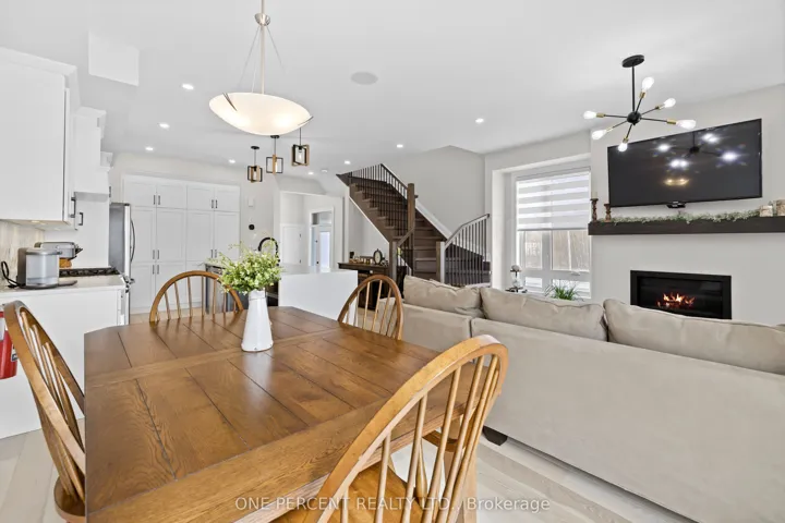 +"PublicRemarks": "This Urbandale Da Vinci end unit in Kemptville's The Creek community checks the boxes that are genuinely hard to find together: a premium corner lot with NO REAR NEIGHBOURS, a double garage, and over 2,066 sq. ft. of stylish living space where the finishes do the talking. The main floor opens with a spacious foyer and sitting area, beautiful hardwood, and an open-concept layout that flows from the kitchen through to the backyard. The kitchen is the centrepiece, with quartz countertops, a tile backsplash, stainless steel appliances including a gas stove, and a large waterfall island with counter seating that anchors the space for both cooking and conversation. Built-in speakers in the living area and a gas fireplace set the tone for a space that's as comfortable for a quiet evening as it is for entertaining. Patio doors to the backyard off the dining room complete the space. Upstairs, no detail was spared, as hardwood continues throughout. The primary bedroom features a walk-in closet and a five-piece ensuite with soaker tub, a glass shower with designer tile, double sinks, and quartz counters. Two more bedrooms, one with a walk-in closet, share a full bath with quartz counters. A loft area works naturally as a home office or flex space, and laundry is conveniently located on this level. The basement adds comfortable living space with high ceilings, while offering lots of storage. For families ready to move into something special, this is the home that delivers on every front, in a vibrant community minutes from shopping, restaurants, walking trails, and the Kemptville Creek, with easy access to Hwy 416 for the Ottawa commute. Explore the virtual tour and book your private showing today."