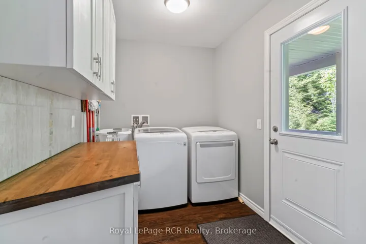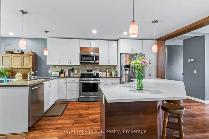 +"PublicRemarks": "Welcome to this charming 3 bedroom bungalow located in the peaceful village setting of Point Clark. Situated on a dead-end cul-de-sac, this beautiful 8 year old home offers a serene and private setting, perfect for those seeking tranquility. Upon entering the home, imagine relaxing on the 130' of covered deck space, then you will be greeted by an open concept layout, creating a spacious & inviting atmosphere. The open kitchen, dining room, dinette and living room offer an entertainers delight. With an abundance of cabinetry, large working island with quartz and concrete countertops making it a chefs delight. Impressive ensuite bathroom with double sinks and large walk in shower, conveniently located off the primary bedroom with a large walk-in closet with custom made barn door. Added in 2025 was a split heat/air unit which will be a perfect for the summer heat. Whether you envision a home gym, a play area for the kids, or a cozy entertainment space, the full unspoiled basement provides ample room to bring creative ideas to life. For car or woodworking enthusiasts you will be pleased to know that this property includes a detached double car garage with an attached workshop. The home features in-floor heat throughout the main floor, basement and workshop. This additional space allows you to indulge in your hobbies or provides ample storage for your vehicles and equipment. The exterior of the house boasts immaculate landscaping, creating a visually appealing and well maintained curb appeal. The yard is thoughtfully designed, making it a perfect space for outdoor activities, gardening (which if fully fenced to avoid wild life) or simply to enjoy the fresh air. Another major bonus is the location to the beach/lighthouse and marina. Imagine taking leisurely strolls along the shoreline, enjoying the sunsets, and embracing the natural beauty mother nature surrounds you in."
