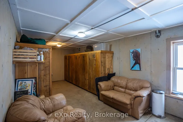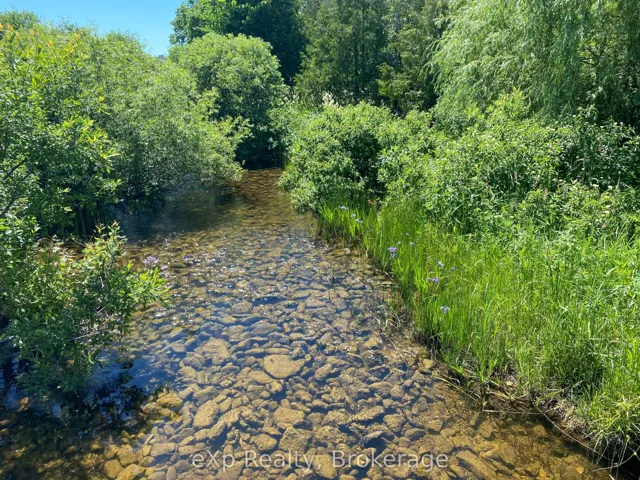 +"PublicRemarks": "Step inside this meticulously crafted home on 150 acres, centrally located between Meaford, Grey Highlands, and The Blue Mountains. The interior blends rich textures and thoughtful design, preserving history with custom wood features made from the original farmhouse. A brick-backed fireplace with a classic black wood stove anchors the spacious great room, while the chef's kitchen features bold red cabinetry, a bright blue island, open shelving, a farmhouse sink, and a high-performance professional-style electric range with smooth cooktop, multiple burners, and double ovens. Heated polished concrete floors flow through the living, kitchen, dining, and four-season sunroom, which opens to a private deck perfect for outdoor dining. The primary bedroom is a private retreat with double walk-in closets, access to the covered balcony, and a walk-through to an extra-large office and family room with a second balcony. Three additional bedrooms and one and a half baths provide space for family and guests. An oversized mud/laundry room with built-in storage, large tile shower, and direct access to the two-car garage. Outside, the home blends historic character with modern style, featuring weathered wood siding on the original home paired with a clean-lined contemporary addition. The land includes two large hardwood stands, about 100 acres of open land, much in hay and suitable for cash cropping, with the balance in pasture, naturally drained soil, and excellent fencing on the front 50 acres. The Rocklyn creek adds more beauty in all seasons as it meanders through the property. A fully insulated, in-floor heated 32x64 shop with 10 k W solar, a 42x92 Coverall barn (2014) with heated tack and feed room, ten 12x12 stalls, oversized aisles, and ample storage, plus a 4-year-old 74x144 riding arena, make this property ideal for agricultural or equestrian pursuits."
