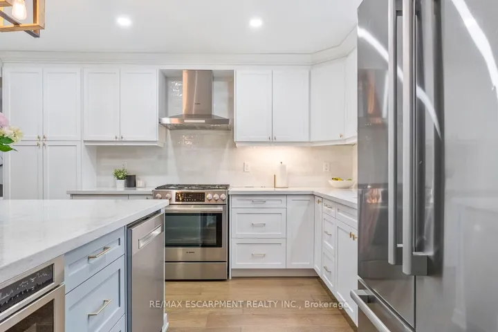 +"PublicRemarks": "Welcome to this beautifully renovated 4+1-bedroom, 3.5-bathroom home, thoughtfully updated from top to bottom by a professional contractor. Tucked away on a quiet cul-de-sac in one of Dundas' most sought-after neighbourhoods, this exceptional property blends modern design with everyday functionality, making it ideal for families and multi-generational living.The main and upper levels feature stunning hardwood flooring throughout, complemented by brand new wood stairs that add warmth and elegance. The heart of the home is the fully renovated kitchen, designed with both style and practicality in mind. Enjoy Quartz countertops, soft-close cabinetry and drawers, and an impressive suite of Bosch appliances including fridge, gas stove, drawer microwave, dishwasher, and range hood. A gas line for the stove and an additional gas line for the backyard BBQ provide added convenience for cooking and entertaining. The kitchen also offers abundant storage space, ensuring everything has its place.Upstairs, you'll find spacious bedrooms, including walk-in closets that provide excellent organization and storage solutions. The versatile lower-level in-law suite offers incredible flexibility for extended family, guests, or potential income, complete with a beautifully finished bathroom featuring heated floors for added comfort.Step outside to enjoy the private backyard, highlighted by a durable concrete patio-perfect for relaxing or entertaining outdoors.Ideally located close to the hospital, top-rated schools, parks, and everyday amenities, this move-in-ready home offers the perfect balance of luxury, comfort, and convenience in a highly desirable Dundas location."