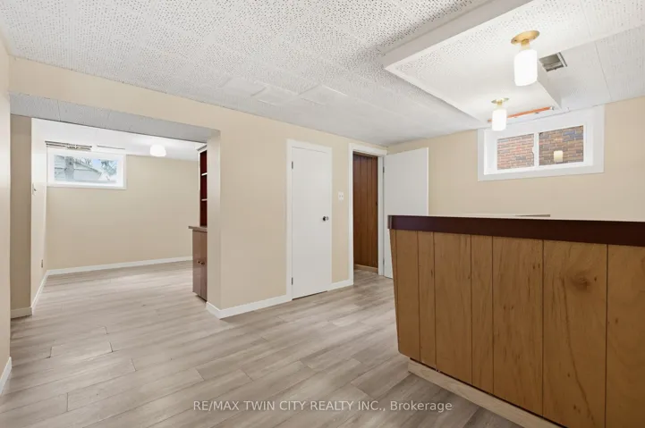 +"PublicRemarks": "Welcome to this charming 2-bedroom bungalow in sought-after East Galt. Featuring original hardwood floors and fresh paint throughout, this home blends character with thoughtful updates. The renovated kitchen is equipped with a gas range and offers convenient side-door access-ideal for those exploring in-law or secondary suite potential with the existing finished basement. Major updates include windows (2015), roof (2015), furnace and A/C (2022), water softener and on-demand water heater (2022), and an updated electrical panel with breakers. The fully finished basement expands your living space with a spacious rec room, stone fireplace feature, dedicated office, bar area, 2-piece bath, and laundry in the utility room-perfect for work, relaxation, or entertaining. Outside, enjoy a private, landscaped lot with a flagstone patio, partial fencing, and a mature treed area. A detached garage with hydro adds even more versatility. Located within walking distance to downtown, schools, and parks, and just 10-15 minutes to Highway 401, this home offers excellent access for commuters to Hamilton, Brantford, and beyond."
