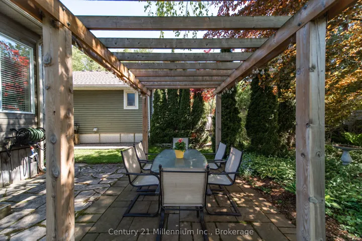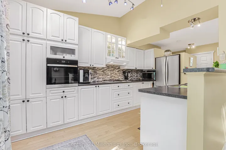 +"PublicRemarks": "Welcome to this meticulously maintained multi-level back split home, nestled on a beautifully landscaped lot in the heart of Southampton. Just a short stroll to the sparkling shores of Lake Huron and the vibrant downtown core, this home offers both tranquility and convenience. Step inside the generous foyer, where the west-facing living room invites you to relax and enjoy breathtaking evening sunsets. The true heart of this home is the stunning family/dining room and kitchen, boasting a full wall of windows, skylights and a patio door that opens to the serene rear perennial gardens, patio w/firepit, and small pond. Natural light floods the space from three skylights, while a cozy natural gas fireplace adds warmth and ambiance perfect for quiet conversations, lively family nights, or culinary creations in the well-appointed kitchen with built-in appliances and a thoughtfully designed layout. Enjoy meals indoors or al fresco under the charming pergola, where the soothing sounds of the waterfall in the pond create the perfect backdrop for outdoor dining. Patio table and chairs are included for effortless entertaining! The main level also features a bedroom, a full bathroom, and a convenient laundry/mudroom with access to both the garage and side yard ideal for unloading groceries or stepping in from outdoor fun. Upstairs, two spacious bedrooms and a full bath await, with the primary suite offering double closets and lovely east, south and west-facing windows. The lower-level family room provides additional comfort with a second natural gas fireplace, along with a tucked-away office space featuring a large desk ready for move-in convenience. Storage is plentiful, with a large storage/workshop area, a double-car garage with additional space, and an attached garden shed perfect for storing equipment and outdoor essentials. Back-up Generac Natural Gas generator. This home is truly a complete package, offering comfort, style, and an unbeatable location."