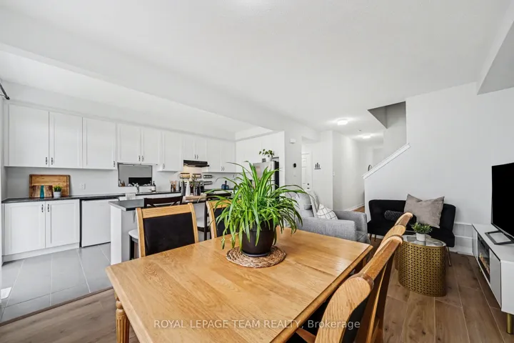 +"PublicRemarks": "Welcome to The Odyssey, a thoughtfully designed 3-bedroom, 3.5-bathroom townhome offering modern comfort, stylish finishes, and exceptional functionality. Step onto the inviting front porch and into a welcoming, spacious foyer with a convenient closet and powder room. The main level features a smart, open-concept layout with a versatile flex space, ideal for a home office, coffee bar, or reading nook, leading into a beautifully upgraded chef's kitchen. Enjoy cooking and entertaining with an oversized island, upgraded extended cabinetry to the ceiling, and ample counter space, all overlooking the bright and spacious great room. This main floor is complete with inside entry from the garage, opening to a secondary foyer area with a full closet, as well as patio doors from the kitchen leading to the rear yard overlooking the enclosed reservoir. Upstairs, you'll find three well-proportioned bedrooms, including a generous primary retreat complete with a walk-in closet and private ensuite. A full main bathroom, convenient second-floor laundry, and linen storage add to the home's practical appeal. This home truly stands out with a fully finished basement, offering additional living space with a recreation room, along with a finished bathroom, ideal for guests or growing families. A large utility room and excellent storage space complete this level. Additional upgrades include laminate flooring throughout the main and second levels, hardwood stairs, a larger kitchen island, and an enhanced kitchen layout including deep pot and pan drawers, a garage door opener with EV-ready wiring and water access for easy vehicle cleaning, and a water softener with chlorine filtration system. With its thoughtful upgrades and flexible living spaces, this move-in ready home is perfect for modern lifestyles. Don't miss your opportunity to make it yours!"
