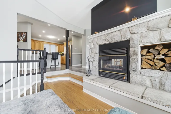 +"PublicRemarks": "Welcome to this beautiful 4-bedroom (3+1), 4-bathroom family home offering exceptional space, comfort, and functionality for today's lifestyle. From the moment you arrive, you'll be drawn in by the serene front yard pond-creating a peaceful, welcoming setting enhancing the home's charming curb appeal. Inside, the home is filled with natural light and features a thoughtfully designed layout with generously sized rooms throughout. The bright kitchen offers ample cabinetry, abundant counter space, & generous breakfast bar-ideal for busy mornings or casual entertaining. The separate dining area is highlighted by a stunning double-sided wood-burning fireplace and garden doors that lead to a deck overlooking the beautifully landscaped backyard, with easy access to nearby trails. Fencing already in place-perfect for children &/or pets. The inviting sunken living room showcases vaulted ceilings, large windows with scenic views, oak flooring and railings-creating a welcoming space for family gatherings. New waterproof vinyl plank flooring has been installed in several areas, adding both style and durability. The primary bedroom serves as a private retreat, complete with a 4-piece ensuite. Two additional bedrooms and a full 4-piece bath provide ample room for the whole family. The main floor is completed by a spacious foyer with plenty of closet space. Enter from the garage for quick access to a generous laundry/powder room. The lower level offers impressive additional living space, featuring a massive entertainment area and a dedicated gym with walkout access to the back. Enjoy year-round relaxation in the covered hot tub area. Also features a fourth bedroom (currently used as an office), 3-piece bath, cold storage, workshop/utility space-offering excellent in-law suite potential.For those needing extra space, the property includes both a double attached garage & detached insulated garage (2011)-ideal storage, recreational vehicles/boat. This home has it all. A must-see!"