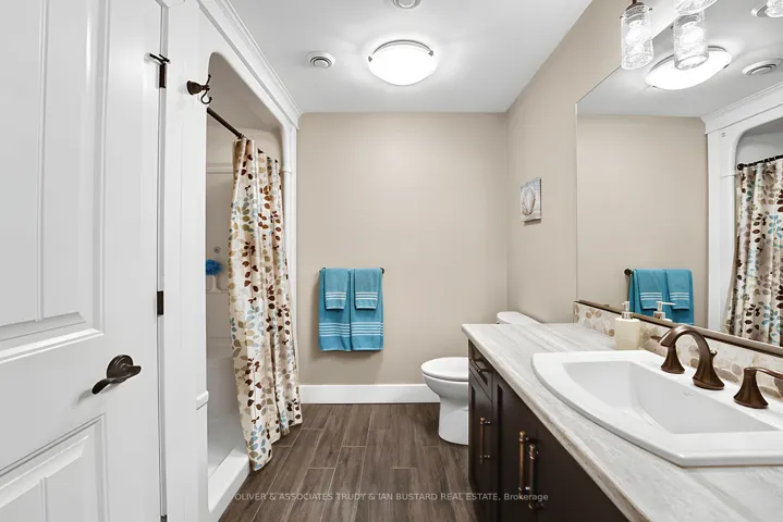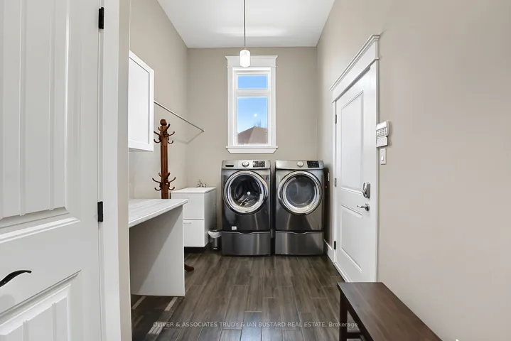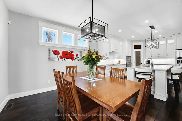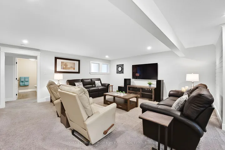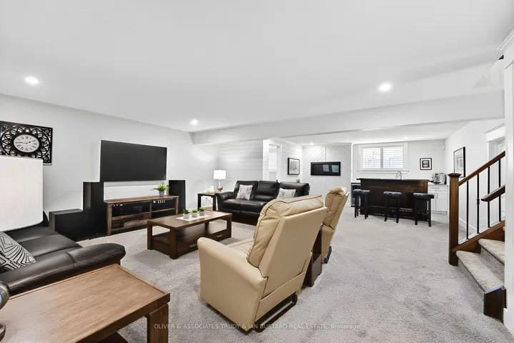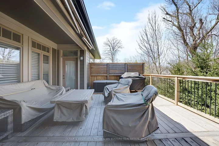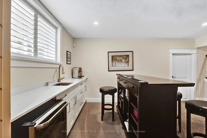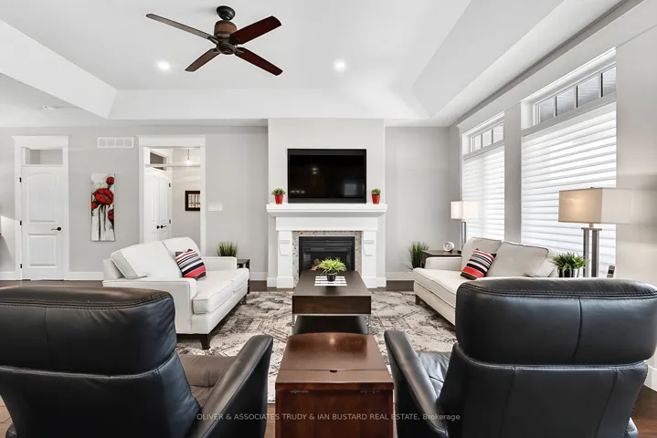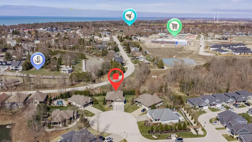 +"PublicRemarks": "Welcome to this picture-perfect bungalow by Medway Homes, nestled in the prestigious Harbourside Village of Grand Bend. Just a short stroll to downtown shops, dining, and the beach, this exceptional home blends elegance, comfort, and effortless one-floor living. Offering over 2,800 sq ft of total finished space, the home features a bright, open-concept layout with tasteful, upscale finishes. The stunning custom kitchen serves as the heart of the home, boasting an oversized island, quartz countertops, and premium appliances. The main floor includes a convenient laundry room and a spacious primary suite. Extend your living space outdoors to the expansive deck, complete with a covered area and powered awning, overlooking a private, landscaped lot that backs onto serene woods. The fully finished lower level adds significant value, featuring a cozy family room with a gas fireplace, a wet bar, and additional versatile rooms perfect for guests or a home office. Practicality meets luxury with a massive attached garage, featuring a sink and direct walk-up access to the basement. Recent upgrades include a new poured concrete driveway and walkway, a sophisticated sprinkler system and a security system. Situated on a quiet, pie-shaped lot, this home offers the perfect balance of privacy and community, with local schools and the Old Ausable Channel just moments away. Experience the best of Grand Bend living in this meticulously maintained, move-in-ready residence."