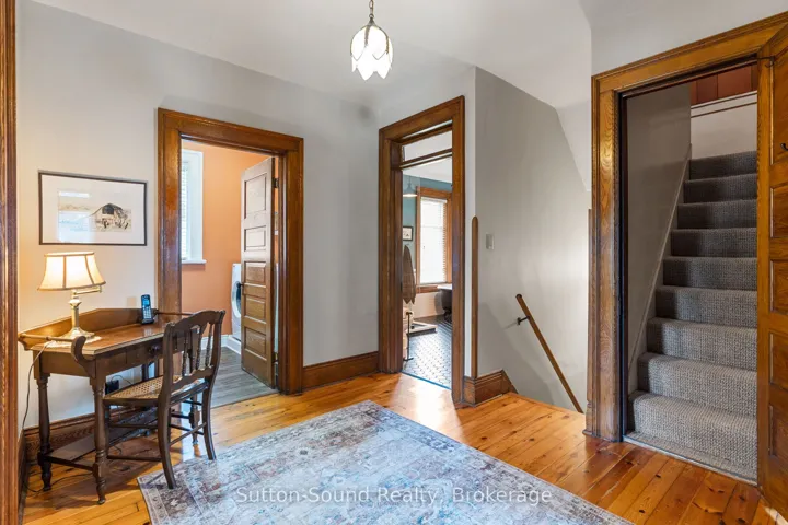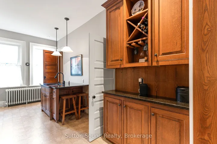 +"PublicRemarks": "UNPARALLELED CENTURY HOME Gracefully Situated on a Picturesque Tree-Lined Street. Lovingly Maintained and Cherished by only Two Families over the past 125 years, this Stately Residence Showcases Exceptional Original Millwork and Timeless Character throughout. The Grand Foyer features an Impressive Staircase setting the tone. The Main Floor lends itself to a Parlour-Style Living Room with cozy Gas Fireplace, Three-Season Sunroom, Formal Dining Room with built-in shelving and Elegant Pocket Doors, and a Beautifully Updated Kitchen with Custom Cabinetry, Granite Countertops, and Breakfast Bar. An additional Den/Entry and 2-piece Bath complete the Main Level. Quaint Outdoor Living Spaces include an Extensive Covered Front Porch and a Private Backyard with an Expansive Covered Cut Flagstone Patio thoughtfully designed to compliment this era highlighted with Period-Inspired Woodwork and Columns, complete with an Outdoor Bar and BBQ area, versatile for both entertaining or relaxing. The Second Level offers a Spacious Landing, Three Large Bedrooms including a Primary with two Deep Closets, a Luxurious 4-piece Bath with Soaker Tub, Glass Walk-in Shower and Heated Floors, plus a Well-Equipped Laundry Room for added convenience. Throughout the home, High Ceilings and Large Windows fill the space with Natural Light. The full insulated Attic presents exciting potential for additional living space, while the Lower Level offers a Partially Finished Living Space, Work Room, and Generous Storage as well Walk up Access to the rear yard. Ideally located within walking distance to downtown amenities, including restaurants, theatre, library, market, harbour, and Kelso Beach. Timeless Elegance Meets Modern Living----this truly is a Rare Century Home Offering."