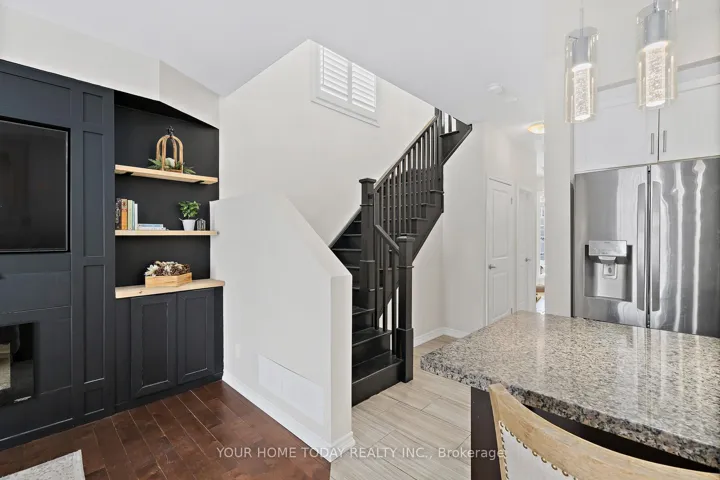 +"PublicRemarks": "Situated in Guelph's highly desirable east end, this exceptional end unit townhome is set in a quiet family-oriented neighbourhood just minutes from schools, parks, library and picturesque trails. Enjoy the convenience of nearby amenities, the proximity of Guelph University and effortless access to major commuter routes. An inviting covered porch and professionally installed, all season, Gemstone lighting welcome you into the bright, open-concept main level where a thoughtfully designed floor plan makes everyday living and entertaining a delight. The living room showcases an eye-catching built-in wall unit with a toasty electric fireplace, open shelving and practical storage along with a convenient walkout to the yard. The adjoining dining area and kitchen add to the open vibe. The stunning kitchen serves as the heart of the home, showcasing beautiful two-tone cabinetry, a generous island with seating and sleek granite countertops - a perfect blend of style and functionality. A chic powder room completes this level. A lovely wood staircase leads to the upper level where the primary suite offers a walk-in closet and a beautifully finished 3-piece ensuite bath. Two additional bedrooms share a stylish 4-piece bathroom. The convenience of second-floor laundry with built-in cabinetry is a bonus. The finished lower level extends the living space with a cozy rec room featuring pot lights and laminate flooring while still providing ample storage and utility space. Rough-ins for a 3-piece bathroom and wet bar are a bonus! The fenced yard is almost maintenance free with large patio area (almost 90% of yard) providing the perfect outdoor entertaining space. Parking for three vehicles (one in garage, two in driveway) completes this impressive offering."