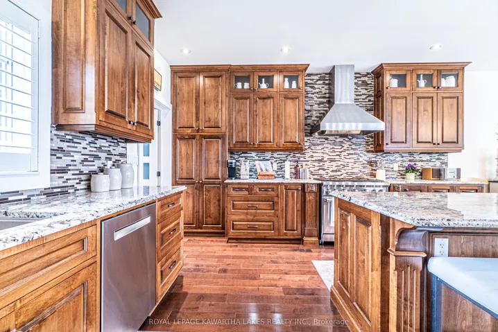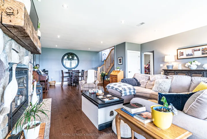 +"PublicRemarks": "Experience lakeside living on beautiful Pigeon Lake with this stunning 1+2 bedroom, 2.5-bath waterfront home. The main floor boasts a bright and airy great room with cathedral ceilings, hardwood floors, with a floor to ceiling stone gas fireplace and a walkout to a covered rear deck spanning the rear of the home. The gorgeous custom kitchen features granite countertops, a large center island, soft close drawers and cabinets, and flows seamlessly into the bright dining room with stunning lake views. The spacious main floor primary bedroom includes a walk in closet with built ins and a 3 piece ensuite, while a 2-piece bath, main floor laundry, mudroom with walkout to the attached double garage add extra convenience. The fully finished lower level offers two additional bright bedrooms, both with walk in closets, plus a 3-piece bath, and a large rec room with another gas fireplace and walkout to the stamped concrete patio and yard. A den/playroom and utility/storage room complete the space. Enjoy the comfort of heated floors and 9ft ceilings throughout the entire home. Step outside to 105 feet of waterfront on the Trent-Severn Waterway. Relax on your private dock, wade into the soft-bottom shoreline, or make use of the boathouse. A perfect retreat for waterfront living."