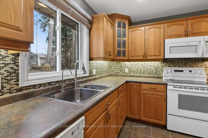 +"PublicRemarks": "Set on an impressive, oversized corner lot, this attractive 21-year-old brick and vinyl bungalow offers 1,250 sq ft of above-grade living space and exceptional outdoor areas. Interlocking walks, patios, and mature gardens surround the property, while a large backyard sundeck, with a bridge to an elevated green space featuring mature trees, creates a wildlife haven. A triple-paved driveway with RV parking, covered front verandah with pot lighting and mature landscaping complete the exterior package.Inside, the southeast-facing main floor is bright and welcoming, with ash hardwood floors throughout the living areas and bedrooms and large windows that flood the space with natural light. The living room features a gas fireplace, and the spacious kitchen features a glass-tile backsplash, ample cabinetry and counter space, a dedicated filtered-water tap, and patio doors from the dining area that open to the back deck - perfect for entertaining. A convenient main floor laundry room with built-in counters, cupboards, and garage access adds everyday practicality.The finished lower level offers a generous family room, a cozy gas fireplace, a third bedroom, and a 4-piece bath - perfect for guests or extended family.You will discover an abundance of storage inside the home. Major updates include a metal roof (2020), eavestroughs (2021), and a new furnace and central air conditioner (2021). A well-maintained, move-in-ready home with space, character, and lasting quality throughout. Offers will be presented April 14th at 1:00pm."