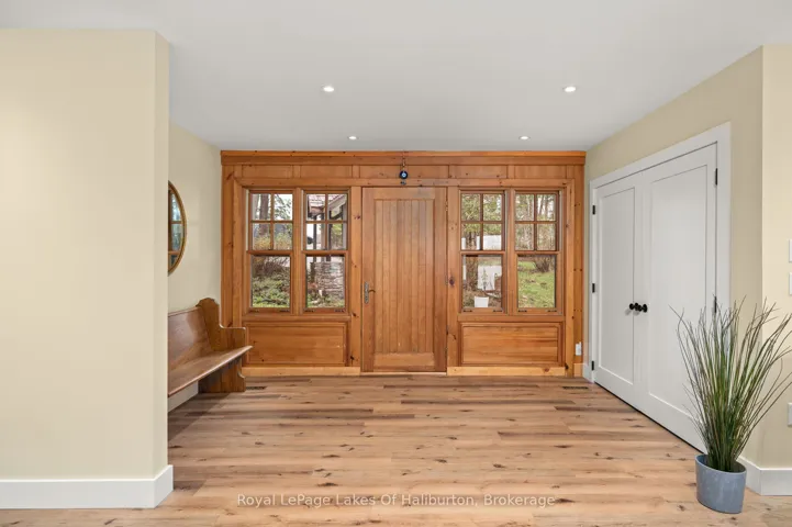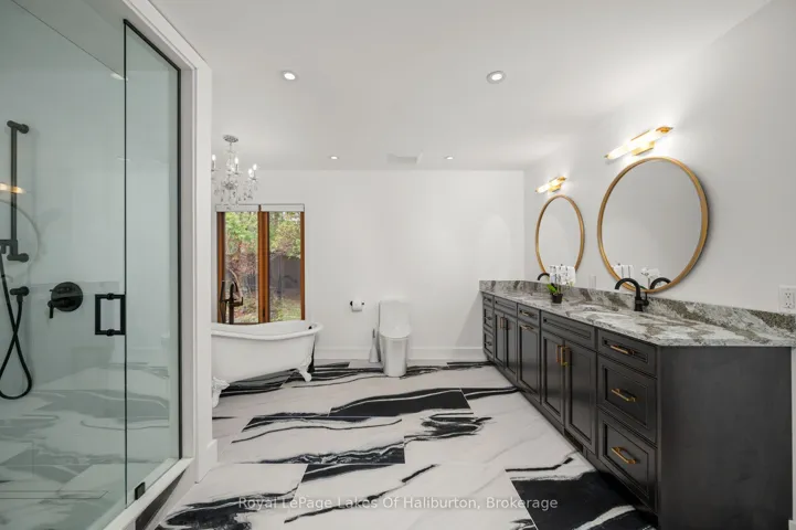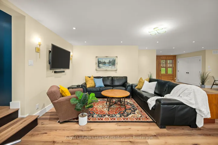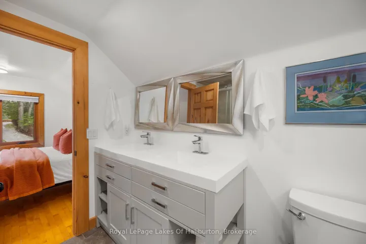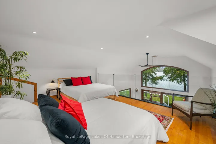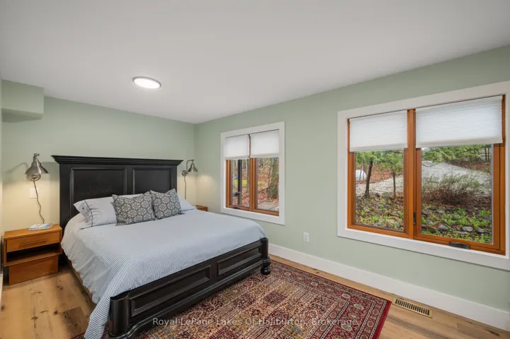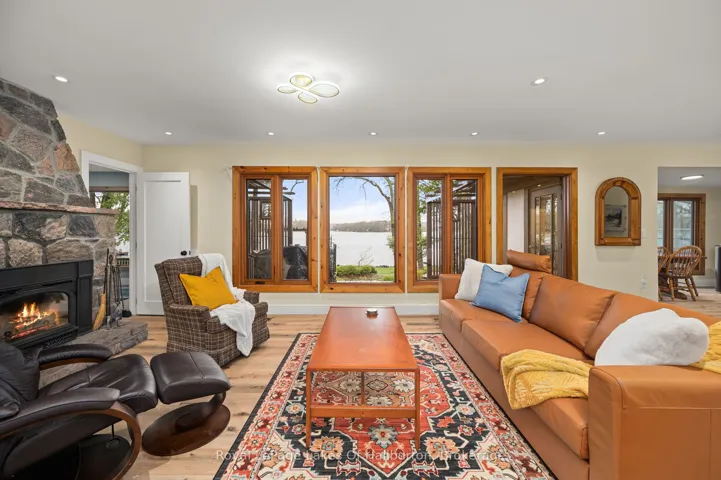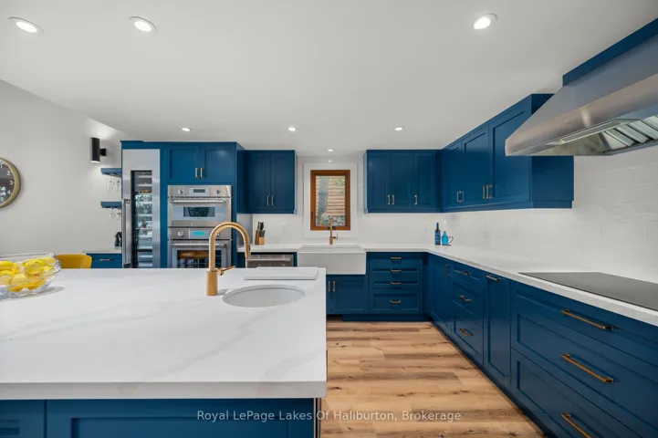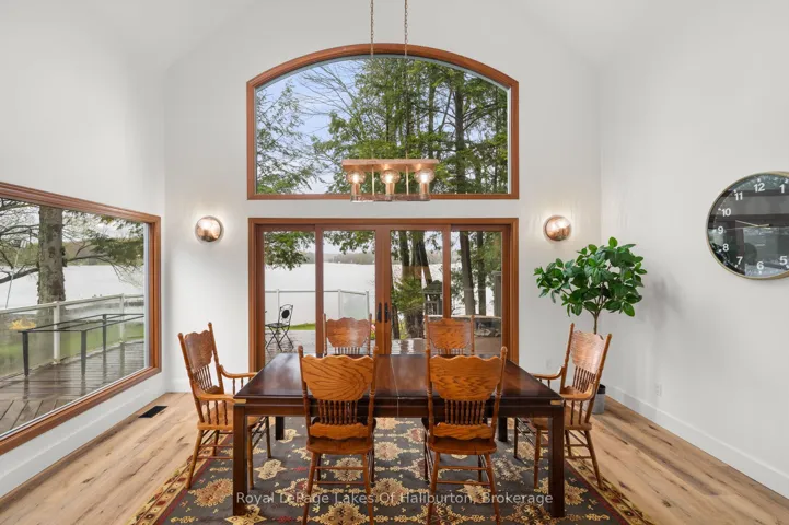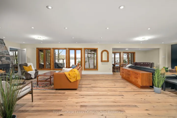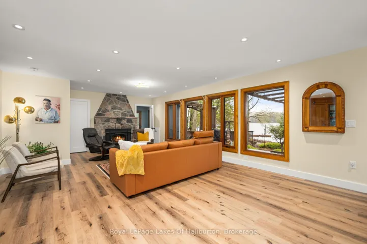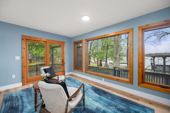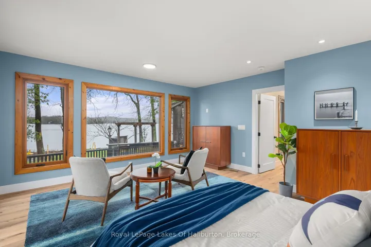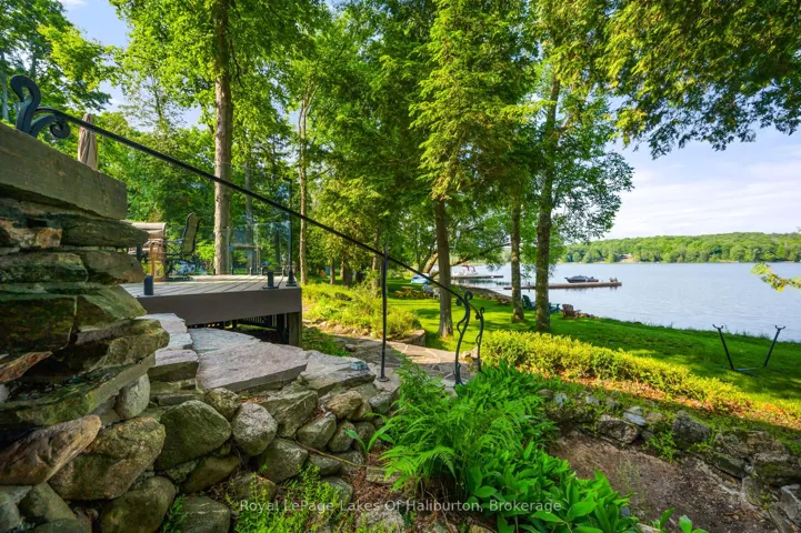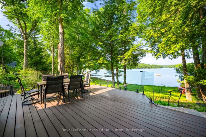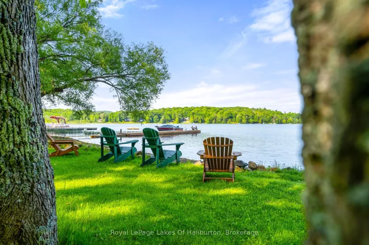 +"PublicRemarks": "Imagine waking to shimmering lake views and ending each day with breathtaking western sunsets over your own sandy shoreline. This exceptional 4-bedroom, 4-bathroom executive lake house on the scenic Kashagawigamog five-lake chain offers year-round luxury in the heart of the Haliburton Highlands - with the rare ability to boat directly into town. Set on a level lot with pristine waterfront, this home blends modern executive living with timeless charm. Enter through a custom antique wood door and be greeted by a dramatic wall of windows framing uninterrupted lake views. The open-concept living area features a stunning stone wood-burning fireplace, cozy sitting area, breakfast nook, and walkout to expansive lakeside decking. The gourmet kitchen is a chef's dream, boasting $100K in high-end Thermador stainless steel appliances, including a wine fridge, oversized sit-up island, dual deep sinks, and seamless flow into the cathedral-ceiling dining room with walkout to a glass-paneled deck. The main-floor primary suite is a private retreat with its own lakeside walkout, a spacious walk-in closet, and a luxurious 5-piece ensuite featuring a soaker tub and glass shower with seat. A second main-floor bedroom with a 3-piece ensuite adds convenience, while two generous upper-level bedrooms and a 5-piece bath provide comfort for family and guests. There's even the rare opportunity to purchase the adjacent separately deeded waterfront lot - ideal for creating a private family compound. All this, just a short walk to town, the hospital, medical center, and local amenities. Luxury, privacy, nature, and convenience - perfectly combined."