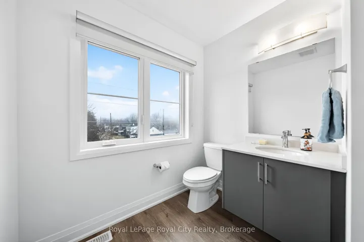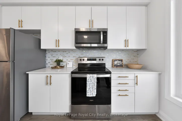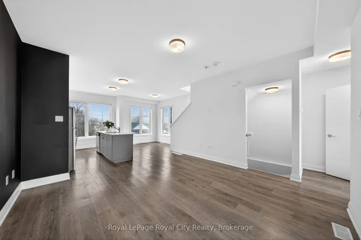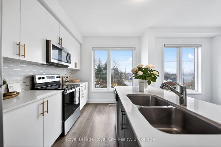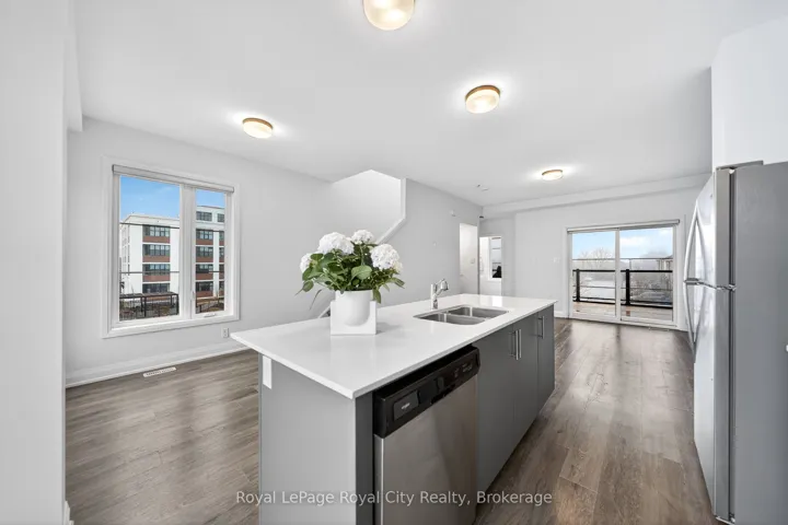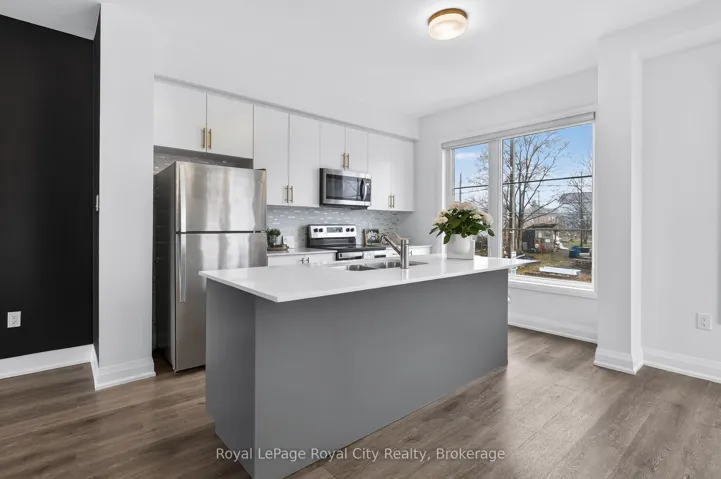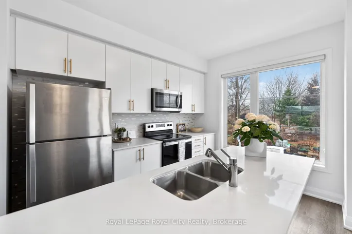 +"PublicRemarks": "Welcome to 150 Huron Street, a stunning 3-storey CORNER townhouse in the heart of St. Patrick's Ward, one of the city's most vibrant and sought-after neighbourhoods. Built in 2021, this modern residence offers a bright, functional layout with 3 bedrooms, 4 bathrooms, and stylish finishes throughout-perfectly suited for today's lifestyle. The sun-filled main level showcases an inviting open-concept design, featuring a contemporary eat-in kitchen with stainless steel appliances, ample cabinetry, and a striking waterfall quartz island with breakfast bar. The adjoining living space seamlessly extends to a private elevated terrace-ideal for outdoor dining, summer entertaining, or relaxing with your morning coffee. A convenient 2-piece powder room completes this level. Upstairs, the spacious primary suite offers a charming Juliette balcony and a sleek 3-piece ensuite. A second generously sized bedroom and a well-appointed 4-piece bathroom provide comfort and functionality for family or guests. The ground level adds exceptional versatility, offering a flexible space perfect for a home office, third bedroom, gym, or studio. This level also includes a 2-piece powder room, laundry area, back door and direct access to the attached single-car garage. Ideally located just steps to the GO Train Station, parks, trails, shops, restaurants, and directly across from the Two Rivers Community Garden, this home delivers an unbeatable blend of urban convenience and community charm. An exceptional opportunity for first-time buyers, professionals, investors, or growing families alike."