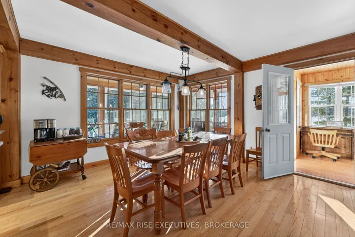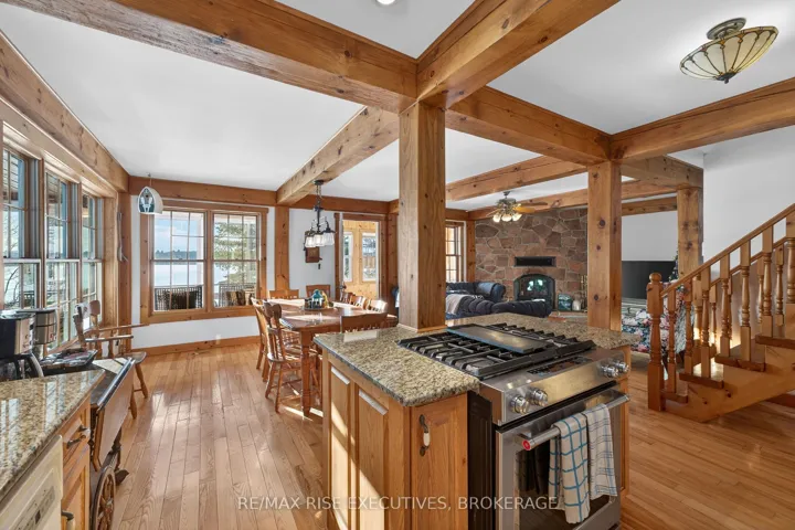 +"PublicRemarks": "1093B Two Loon Lane - O'Reilly Lake. Welcome to pure paradise. Tucked away on a quiet, well-maintained year-round road, this custom-built 4-bedroom lakefront home offers unmatched privacy with 9 acres of seclusion and an incredible 528 feet of pristine shoreline on peaceful O'Reilly Lake-where gas motors are prohibited, ensuring calm waters and a true escape. Warmth and character fill the home, highlighted by pine beams, ash hardwood floors, and a thoughtfully designed layout. The main floor features a convenient bedroom with direct access to the attached garage and hot tub, along with a 3-piece bathroom-ideal for main-level living or guests. Upstairs, you'll find three additional bedrooms, including a spacious primary bedroom, and a beautiful main bath complete with soaker tub and separate shower. The heart of the home is a welcoming kitchen with granite island, flowing seamlessly into an enclosed, year-round wraparound porch that's both heated and cooled-perfect for enjoying the lake views in every season. A massive 25' x 23' attached garage provides plenty of room for vehicles, toys, and storage. Outside, the property truly shines with a finished, heated bunkie ideal for guests or a games room, multiple outbuildings, and your own private boat launch. Whether you're swimming, paddling, or simply soaking in the quiet, this is lakefront living at its finest. Currently operated as a successful and lucrative Airbnb, this property offers the next owner the option to continue generating strong rental income, or simply enjoy it as a private family retreat. Offered fully furnished, including all furniture, dishware, canoe, kayak, hot tub, and more, this is a true turn-key waterfront opportunity. A rare combination of privacy, lifestyle, and income potential-once you arrive, you may never want to leave."