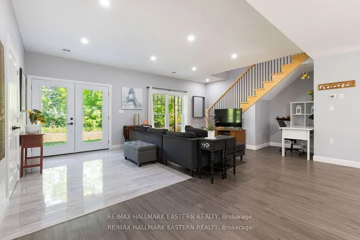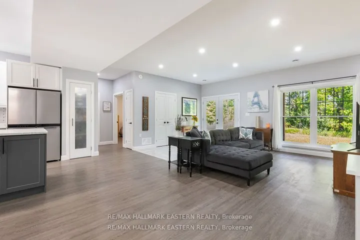 +"PublicRemarks": "Custom-Built Country Retreat on Nearly an Acre. Welcome to this beautifully designed 3-bedroom, 2-bathroom custom home, set on a private, tree-lined lot just under an acre in size. Built in 2023 and located on a quiet paved municipal road with only six other homes, this property offers the perfect blend of modern comfort and peaceful country living less than 15 minutes north of Havelock and 45 minutes to Peterborough. With 2,429 sq ft of finished living space and 36 doorways throughout for enhanced accessibility, this thoughtfully laid-out home features an open-concept main floor with a chef-inspired kitchen, spacious living and dining areas, and walkouts to a covered front porch and serene backyard. The primary suite includes private access to the rear yard, a luxurious 5-piece ensuite with a soaker tub and glass shower, and a large walk-in closet. Two additional bedrooms and a full 4-piece bath complete the main level. Upstairs, over 800 sq ft of finished bonus space is currently set up as a games and entertainment room ideal for a home office, additional bedrooms, or an in-law suite, with plumbing already roughed in. Additional highlights include a fully insulated attached 2-car garage with propane hook-up, Gener Link hookup at the hydro meter, and radiant in-floor heating (system in place but not currently in use). Just minutes from public beaches and boat launches on Oak, Kosh, and Twin Lakes. This is your opportunity to own a move-in-ready, custom home surrounded by nature. Book your private showing today!"