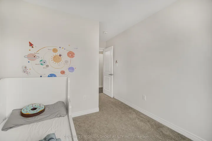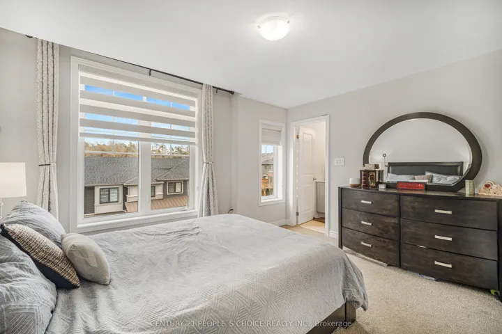 +"PublicRemarks": "Beautifully upgraded 3 storey townhouse built in 2023, offering approximately 1,895 sq ft of well designed living space. This home features 4 bedrooms and 4 washrooms, including 2 ensuites, ideal for multi generational living or added privacy. The ground level includes a bedroom with its own ensuite, perfect for guests, in laws, or a private home office.Bright and spacious main level with 9 ft ceilings and an open concept layout, complemented by a spacious balcony, perfect for relaxing or entertaining. The upgraded kitchen features quartz countertops, extended cabinetry, centre island, tile backsplash, gas line stainless steel appliances, and a built in pantry, seamlessly connected to the living and dining areas.Premium upgrades throughout include oak stairs, zebra blinds, electric fireplace, and TV ready package. The upper level offers a spacious primary bedroom with ensuite and double vanity, along with generously sized additional bedrooms and well appointed bathrooms.Enjoy a premium park and community basketball court facing location with no homes directly in front, offering added privacy, ideal for families. Backing onto a walking trail, perfect for outdoor enjoyment and convenience.Unfinished basement with large windows, 3 piece rough in, and cold cellar offers excellent future potential. Rare double car built in garage with upgraded 200 AMP electrical service. Conveniently located close to schools, parks, shopping, and with easy access to Hwy 401."