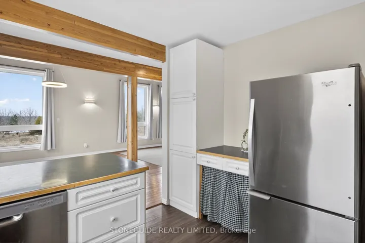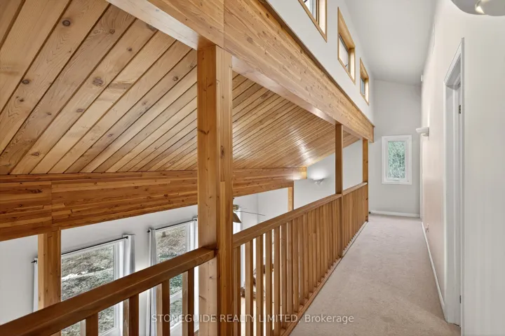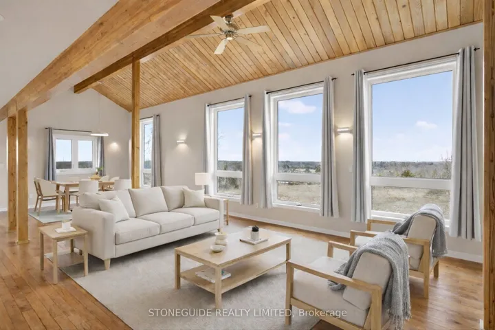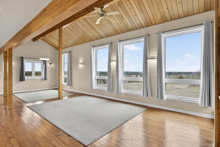 +"PublicRemarks": "Set on nearly 50 acres of rolling countryside, one-owner custom Linwood Home offers an exceptional blend of privacy, natural beauty, and thoughtful design built with efficiency in mind. Ideal for nature lovers and hobbyists, the property features established walking trails that transform into scenic ski routes in winter, with Stoney, Clear, and Katchewanooka Lakes just moments away for boating and recreation. Conveniently located on a municipally maintained road, you're only 20 minutes to Peterborough and 10 minutes to the Village of Lakefield for everyday shopping and dining. The striking post-and-beam construction is complemented by soaring 17-ft cedar ceilings and a bright, open-concept main level that seamlessly connects the kitchen, dining, and living areas. Enjoy the spacious east facing deck which is perfect for sunrise coffee dates! Expansive southern-facing windows flood the entire main level with natural light and showcase picturesque views in every season. The main floor also offers a comfortable bedroom and an updated 3-piece bathroom (2023), ideal for guests or main-floor living. Upstairs, a charming gallery overlooks the main living space and leads to two spacious bedrooms and a well-appointed 4-piece bathroom (2021). An additional walk-in closet (could easily be adjoined to the bedroom), provides flexible potential for storage, or an office. The finished lower level continues to impress with panoramic views, enhanced by newer windows and dual garden doors (2017) that open to a peaceful patio. This level includes a generous recreation space, a fourth bedroom, laundry, and a workshop/utility room-perfect for creative or practical pursuits. Additional updates include most windows (2018), insulated garage doors(2019), furnace (2020), and an owned hot water tank (2022). The attached double-car garage with direct access to main level provides ample storage as well as convenience. Come and see what you are missing!"