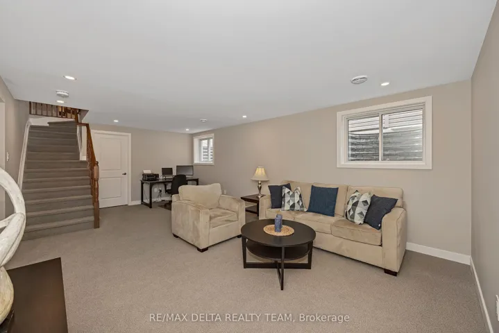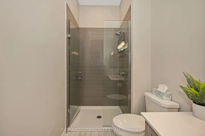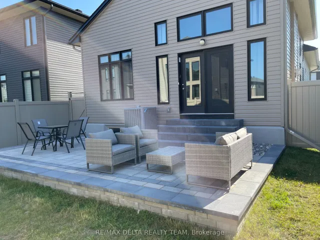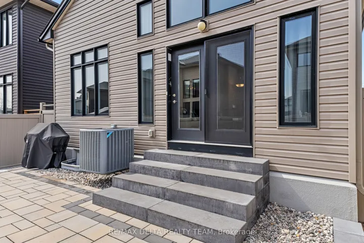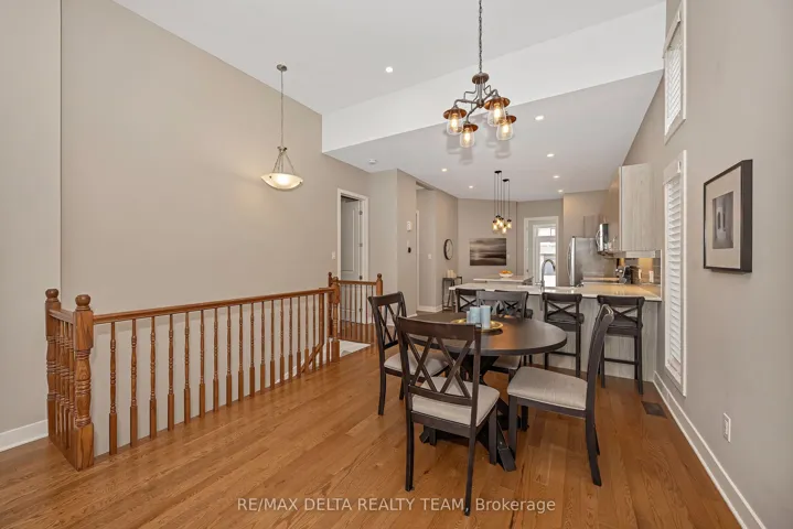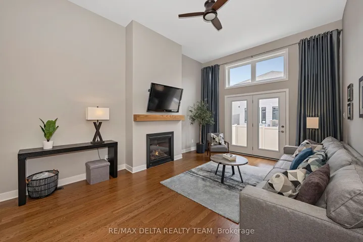 +"PublicRemarks": "This stylish 3-bedroom bungalow blends modern finishes with exceptional comfort. Highlights include hardwood flooring, quartz counters, upgraded lighting, glass showers, and soaring 10- and 12-foot ceilings. The bright open-concept layout features a sleek kitchen with stainless steel appliances and a breakfast island. The main floor offers a serene primary suite with walk-in closet and ensuite, a second bedroom with cheater access to a full bath, and convenient laundry. The finished lower level adds a versatile rec room, third bedroom, full bath, and ample storage. Outside, enjoy a fenced yard with interlock, a double garage, and driveway parking. Ideally located near amenities, trails, and Hwy 416, with deeded access to Kemptville Creek."
