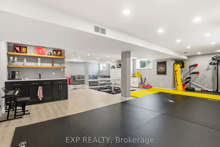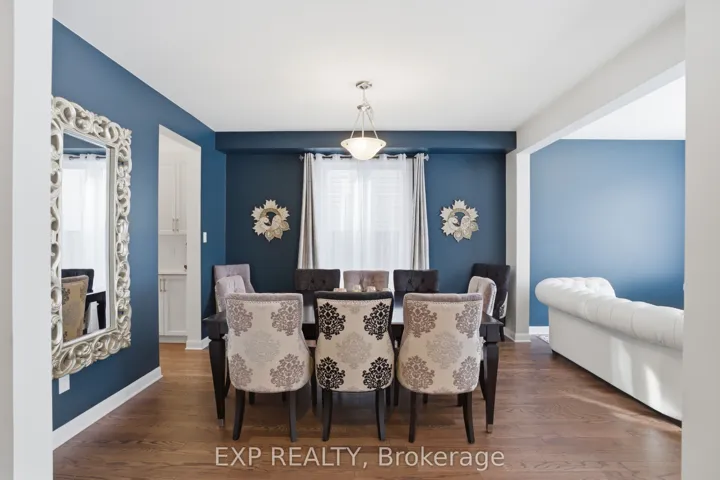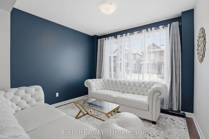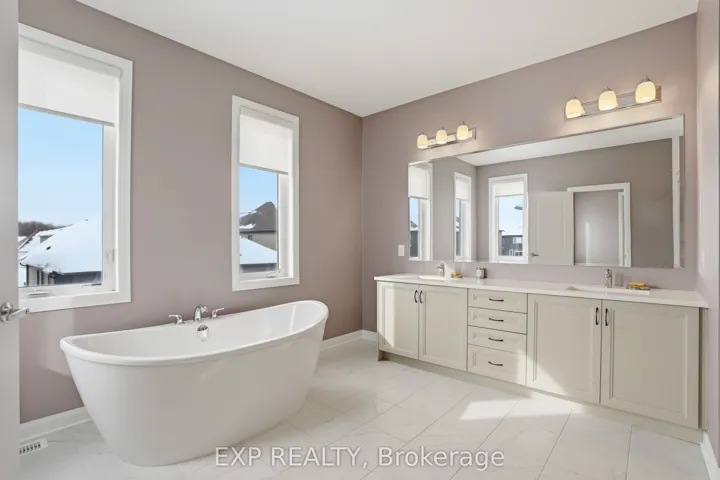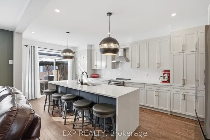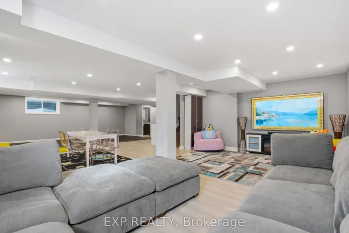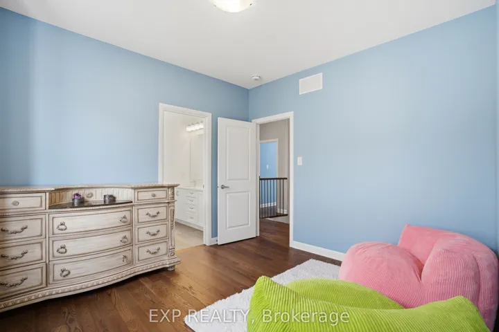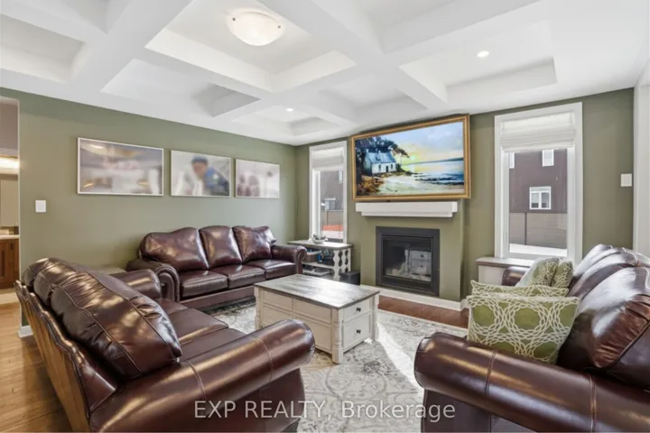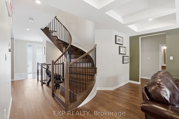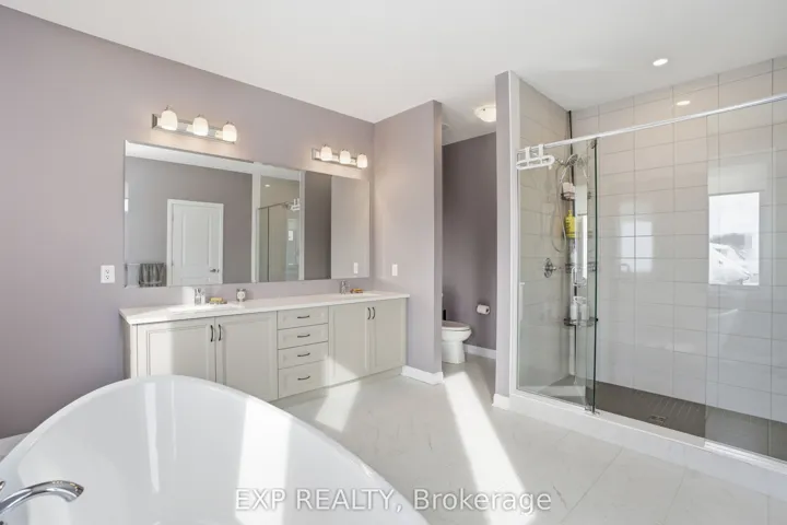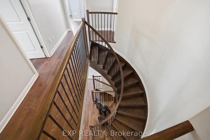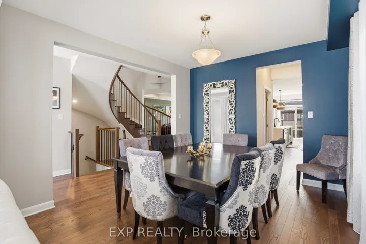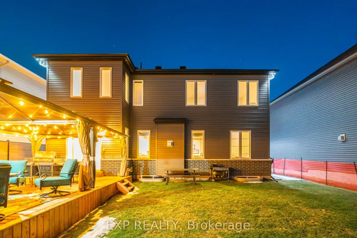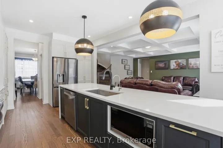 +"PublicRemarks": "This exceptional Elderberry II model offers approximately 3218 sq ft above grade, plus an additional 1,100 sq ft in the finished basement, with 4 bedrooms, a den, and 5 bathrooms. From the dramatic hardwood spiral staircase and vaulted ceilings to the rare walkthrough kitchen layout, this home offers a beautiful blend of elegance and functionality. With over $200,000 in upgrades, a freshly painted interior, and thoughtfully selected finishes throughout, every detail has been carefully curated. The main level features 9-foot ceilings, a gracious front sitting room, a formal dining area, and a chef's kitchen with top-tier upgrades including a striking waterfall island, oversized sinks, extended cabinetry, custom garbage and recycling drawers, and a walk-in pantry with servery. The kitchen opens to a bright living room with a stunning coffered ceiling. A main-level office or den and an oversized mudroom with a walk-in closet add flexibility and function. Upstairs, you'll find 9-foot ceilings and walk-in closets in every bedroom. The spacious primary suite includes two walk-in closets and a luxurious 5-piece ensuite with a freestanding soaker tub, separate shower, and double sinks. A second oversized bedroom has its own 3-piece ensuite, while the remaining two bedrooms share a Jack-and-Jill 4-piece bath. A large laundry room with sink and cabinet storage adds everyday convenience. The fully finished basement, completed in 2025, adds approximately 1,100 sq ft of living space with pot lights, a wet bar with sink, a full bathroom, and excellent storage. Outside, enjoy a fenced backyard with a gazebo, an oversized 16' x 24' deck, a fully interlocked front yard, double-car garage, 4-car driveway, and exterior lighting on three sides."