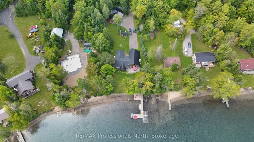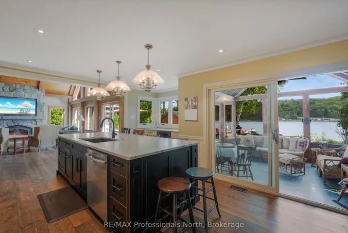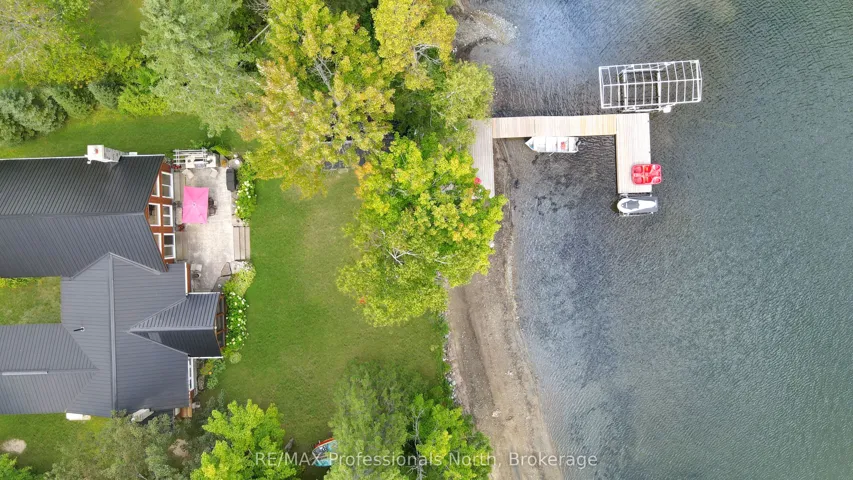 +"PublicRemarks": "Discover your own slice of paradise at this exceptional lakefront property on Twelve Mile Lake- part of a 3 lake chain offering miles of boating.This 3-bedroom, 3-bathroom home offers the perfect blend of charm and modern comfort, making it an ideal year-round residence or cottage getaway. The heart of this home showcases an open-concept design seamlessly connecting the kitchen, dining room, and living room. Post and beam construction in the living room creates an impressive architectural statement, while the gorgeous stone fireplace serves as a stunning focal point in the living room, perfect for cozy evenings by the fire. The thoughtfully designed layout includes three comfortable bedrooms and three full bathrooms, with the primary bedroom featuring a luxurious ensuite bathroom complete with heated tile flooring for ultimate comfort.An additional loft space provides versatile options for guests, office space, or recreational activities. One of the home's most captivating features is the screened-in sunroom, offering breathtaking views of Twelve Mile Lake. The property boasts impressive outdoor facilities including a substantial heated workshop equipped with in-floor radiant heating, combined with a spacious 2-car garage that provides ample storage and additional workspace. The beautifully maintained, level lot gently slopes toward the water, leading to an exceptional sandy waterfront that's perfect for swimming, sunbathing, and water activities. The property includes a charming bunkie positioned near the water's edge, offering additional sleeping quarters for guests or a peaceful retreat for relaxation, while the natural sand beach provides easy water access and creates the perfect setting for family gatherings, entertaining, or simply enjoying the tranquil lake lifestyle.This property combines luxury living with the serenity of lakefront life, offering an opportunity to own a piece of Twelve Mile Lake's coveted shoreline."