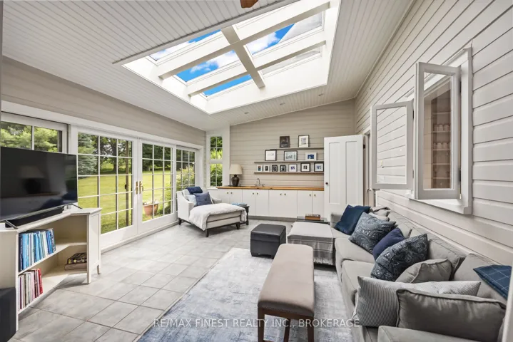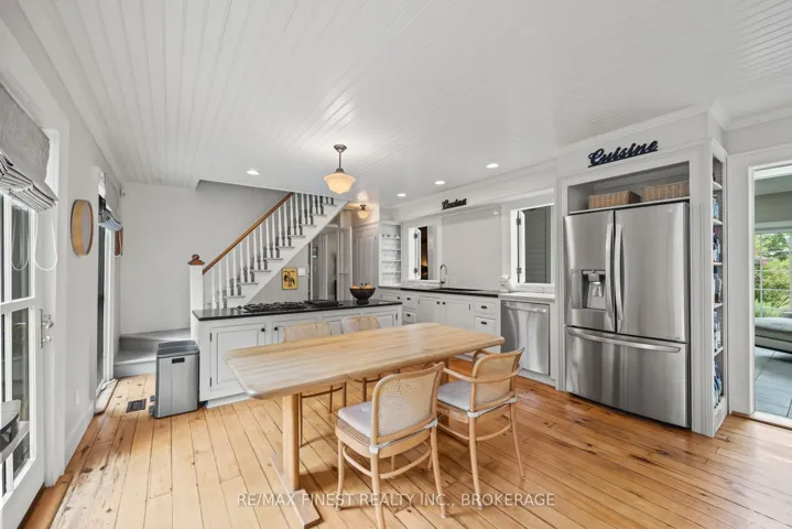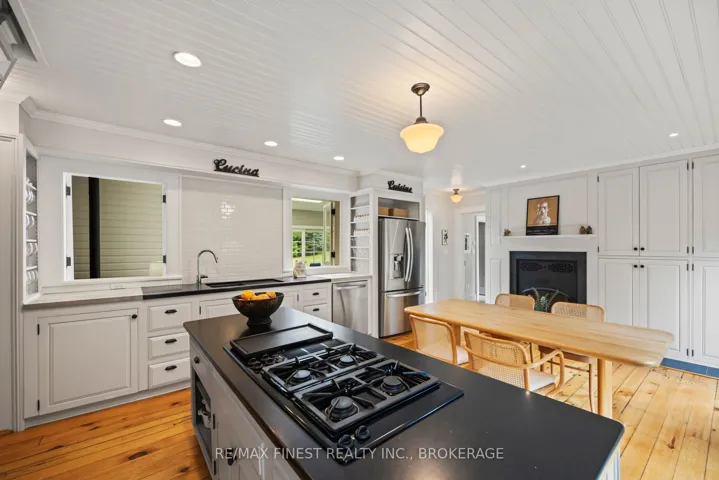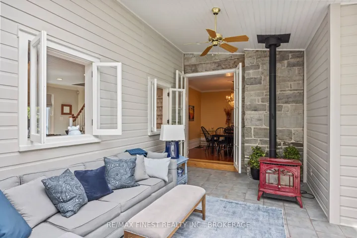 +"PublicRemarks": "Situated 20 minutes from the West End of Kingston, in the rural village of Wilton, stands one of the area's historic limestone homes. Built in 1836 by Henry Pultz, it has been thoroughly modernized to a high standard, whilst retaining all its original character, providing a haven of tranquility close to the city. At nearly 4000 ft2 the bright living space offers a wonderful layout of remarkable rooms: a family/sunroom with exposed stone, skylights, and French doors overlooking a private garden, a large living room with double French doors ideal for entertaining or relaxation, and a spacious, book-lined study with a timbered ceiling which could serve as a perfect home office or bedroom. A large, bright eat-in kitchen overlooks a patio and boasts a wood-burning fireplace. A separate dining room off the family room makes an additional entertaining space for special occasions. The house is currently configured for 3bedrooms and 4 bathrooms, as well as the study, studio and mezzanine at the back of the home, which offer an ideal spot to accommodate additional bedroom space for a teenager or a guest bedroom with its own separate sitting room on the second level. Each bedroom has its own updated ensuite and a surprising amount of closet space, unusual for this vintage of home. With 7 fully functioning fireplaces plus a pellet stove and in-floor heating in the family room, every bedroom and area in the home has its own separate heat source, in addition to the forced-air furnace and central air conditioning. Outside, a 30 ft covered front porch provides beautiful westerly views and front row seats to spectacular evening skies and summer sunsets. The 1.4-acre grounds of the property, including gardens, patio, trees and landscaping, have been maintained at the same level as the interior. The well-kept barn can continue to provide storage for garden tools and machinery, or could potentially offer a space for a studio, workshop, or any number of other uses."