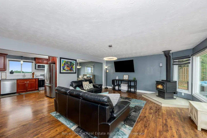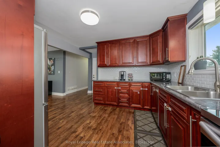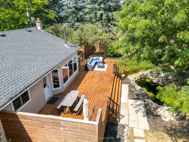 +"PublicRemarks": "Set well back from the road on a picturesque 1/2 acre lot, this beautifully maintained raised bungalow offers just over a total of 2,000 Sq Ft of refined, versatile living. The bright open concept main level showcases a spacious kitchen, dining area and sun-filled living room with fireplace and serene views of the grounds. Three well-appointed bedrooms, a full bath and convenient main floor laundry complete the space. A separate entrance from the single car garage (with additional storage) leads to a thoughtfully finished lower level featuring a kitchenette, two generous rooms (currently used as an office and an exercise room), an updated 3-piece bath and additional laundry-perfectly suited for multi-generational living or income potential. The office room is soundproofed which provides an ideal setting for remote work, studio use or quiet retreat. Outdoors, enjoy a generous deck overlooking a tranquil pond with waterfall feature and expansive private yard-an exceptional setting for entertaining or relaxation. The detached insulated garage/workshop with its own electrical panel adds further flexibility. Tons of driveway parking! Ideally located just minutes to Erin Village and Hillsburgh, this property offers a rare combination of privacy, sophistication and investment potential."