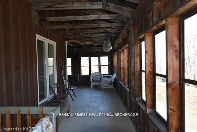 +"PublicRemarks": "The house on the hill on 15 acres of scenic woods, trees, granite outcroppings, garden areas and a tranquil pond. The south facing views from the large sunroom make it all worth while to sip your morning coffee all year round. The new stylish four piece main floor bathroom is superb. The open concept kitchen leads to the sunroom or to the large main floor family room with hardwood floors. Upstairs the 3 bedrooms and office area are all good sizes and the master has a 2 piece ensuite. There is plenty of room to add another four piece bathroom too if required. A metal roof and a newer oil tank, furnace and hot water tank as well as an updated 200 amp panel box make living easy. Entrance can be from the lower level or the front door with a two sided covered rap around porch large enough for a party itself. The lower unfinished basement is high and dry and provides a great area for future expansion and there is also a roughed in area for another bathroom here. The board and batten siding is real wood and the home is wrapped in insulation under the siding which makes heating costs reasonable. With over 2000 sf of living area this home is a solid investment. Updates include new 200 amp panel box, oil tank 2021, solid wood eating bar in kitchen, and this combined with the metal roof, and high dry walk out basement, makes this a solid home for any young family to begin a new life in the country. Sitting on the hill provides privacy and panoramic views from the sunroom of the entire property. And all that road frontage makes severance possibilities an added value feature. Wakeup to the sounds of birds and wildlife. Home comes with an excellent well and septic. Just 55minutes to downtown Kingston, and not far from a large grocery store in Verona. If you like fishing you can possibly visit a different lake every day of the year in this land of lakes community. Enjoy the rural life for all its worth in this large family home that awaits a new owner. See it today."
