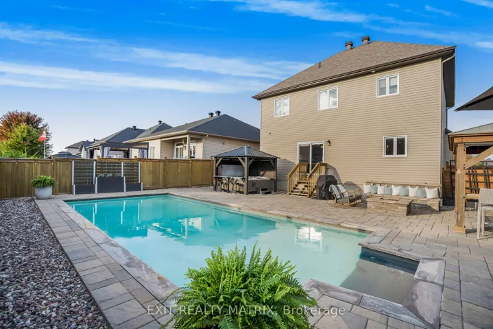 +"PublicRemarks": "**OPEN HOUSE Sun Ap 19, 2-4pm** Located just 30 minutes from Ottawa and the downtown core, this beautifully updated two-storey home in the heart of Embrun offers the perfect balance of small-town charm and city convenience. Enjoy the space, privacy, and strong sense of community while staying easily connected for work, dining, and entertainment. Offering 4+1 bedrooms and a host of modern upgrades, this property combines timeless charm with modern comfort. The main level is thoughtfully designed, featuring a bright and inviting living room with a cozy gas fireplace and a chef-style kitchen with a center island, pantry, and abundant cabinetry. The seamless flow between spaces makes it perfect for family gatherings and hosting guests. Upstairs, the spacious primary suite includes a walk-in closet and ensuite. The finished basement expands the living space with oak stairs, a stylish wet bar, and a second fireplace - an entertainer's dream. Step outside to your private backyard retreat. This fully landscaped corner lot showcases a heated saltwater inground pool, hot tub, two gazebos, natural gas outdoor fireplace, gas BBQ hookup, and interlock with firepit and seating. The front yard was refreshed with new interlock and landscaping, adding striking curb appeal. Other updates include a modern laundry room and many thoughtful upgrades throughout, ensuring comfort and peace of mind. Every detail reflects pride of ownership and care. This is a rare opportunity to own a gorgeous home in excellent condition, offering elegance, lifestyle, and exceptional entertaining spaces in a growing, sought-after community."