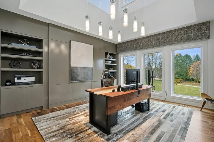 +"PublicRemarks": "Set high on a hill and surrounded by mature trees and backing onto parkland, this extraordinary residence offers the ultimate in privacy & sophistication. A classic, timeless exterior, perfectly situated in Fox Run Estates, one of the area's most coveted estate communities. Over 7300 sq ft of finished living space, it effortlessly blends elegance, comfort, design, and a touch of pizzazz. Magnificently located within minutes of all amenities as well as major transportation arteries, and yet a peaceful tranquil setting. Step inside and prepare to be impressed. The grand foyer boasting rich walnut flooring is flanked by a handsome home office on one side and an elegant formal dining room on the other - perfect for hosting special occasions. The private primary wing is a true retreat, complete with a newly renovated spa-like ensuite, a custom walk-in closet with Birdseye Maple cabinetry, and a private deck leading to a hot tub - the perfect spot to unwind at day's end. The state-of-the-art Downsview kitchen is a chef's dream, featuring an enormous granite island and abundant workspace for multiple cooks to collaborate in style. The bright breakfast area enjoys scenic countryside views, while the adjacent 2 storey sitting area offers a sunny sanctuary. This wing also provides access to a private front courtyard, a second main-floor powder room, laundry room and 3 car garage, along with convenient access to the rear yard and pool area. At the heart of the home, the family room is defined by a granite faced gas fireplace. Custom cabinetry houses an entertainment centre and French doors lead to an expansive rear deck overlooking the pool - a seamless blend of indoor and outdoor living. Upstairs, 2 bedrooms share a full Jack & Jill bath Third bedroom features its own private ensuite. Prepare to be dazzled once again on the lower level, where a recent renovation has transformed the space into an entertainer's dream."