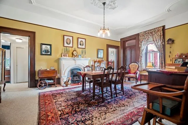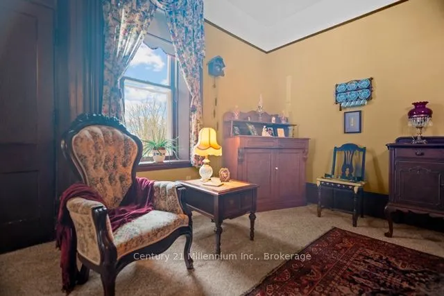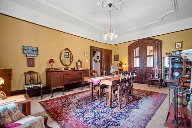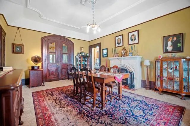 +"PublicRemarks": "A timeless icon in Ripley. named in admiration of a French actress, "Bernhardt" has stood proudly at 1 Jessie Street since 1878. With a vision of serving this rural community young Dr Daniel Smith purchased 25 acres , planted trees, subdivided the land, built a pharmacy and designed the home to sit in the middle of the acreage which included his surgery. Incredible craftsmanship, ceilings, walnut doors, cherry woodwork and amazing plaster artisanry adorn this 3000 sq foot home;truly avant garde for the period. At the end of Jessie Street, this property remains defined by the majesty of walnut and other trees. Two working fountains adorn the yards- both will be operational the long weekend in May. The drive winds its way around the home to an amazing garage/shop and the original carriage house. Over the years the property was reduced to just under 1.5 acres. With loving care the common thread has been family. Purchasing the property in 1918, the Martyn family was the third family to occupy the property; a family of 13 children!. Having deep roots in Ripley, the family ownership crossed over two generations. Always a quandary how the modest kitchen provisioned 30 plus guests! The concrete floor basement accommodates the modern heating system with walk ups to the side yard. The current owners purchased this property in 1999 with a passion for heritage and antiquities they lovingly care for every inch of the home and property. Converting one of the six bedrooms into a spa-like bath greatly improved the functionality of the second floor; the original bathroom is now a great storage closet. The den on the second floor is adorned by intricate plaster detail at the ceiling similar to the main floor "parlour". Most of the rooms throughout the home have unusually tall windows ( about 5 feet each!). So many stories to share it's difficult to describe it all here. Loved by families for over 100 years. It's ready to love your family next."
