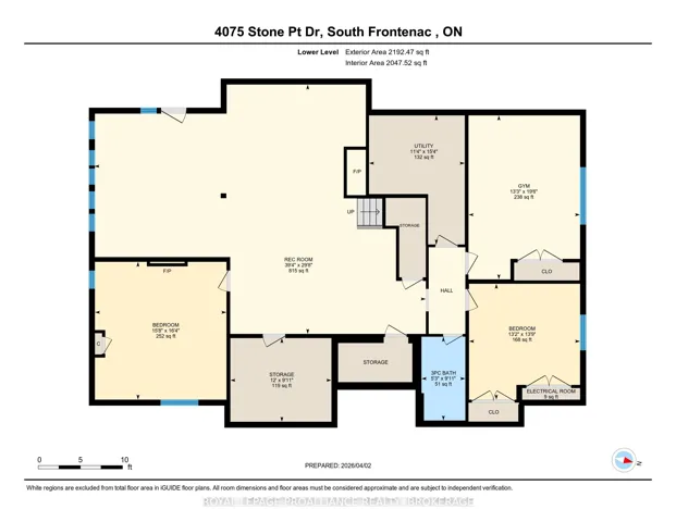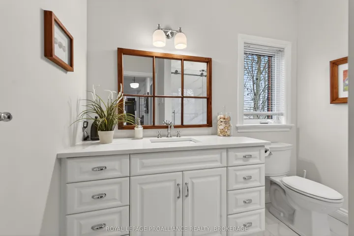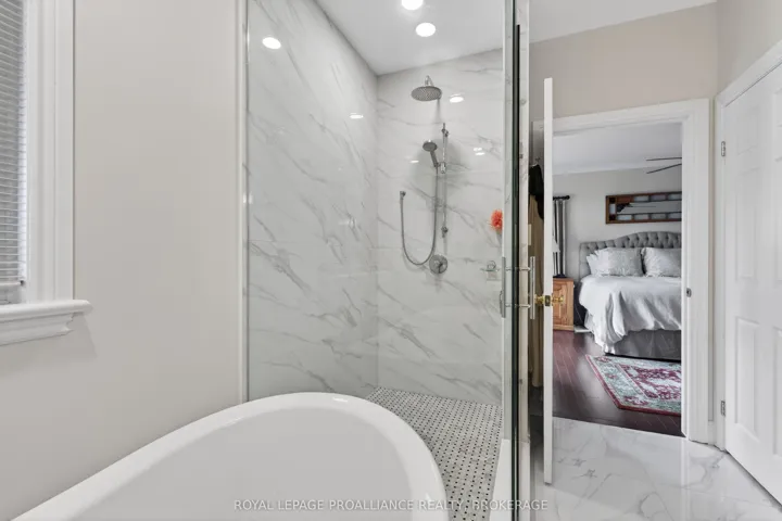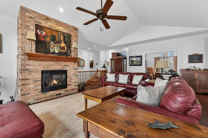 +"PublicRemarks": "Welcome to 4075 Stone Point Drive - an exceptional Garafolo custom-built waterfront residence set on a beautifully elevated lot with approximately 440 feet of pristine frontage on sought-after Dog Lake. This remarkable property blends refined comfort with stunning natural surroundings, creating an ideal year-round retreat. The main floor is thoughtfully designed with two generously sized bedrooms, each with a walk-in closet. The primary suite features a beautifully renovated ensuite with a custom glass shower, marble flooring, a soaker tub, and a double vanity. The main bathroom has also been fully updated, with both spaces enhanced by in-floor heating. Both bathrooms were fully renovated two years ago. Heated tile extends from the foyer through to the kitchen. The kitchen was fully updated ten years ago, including new hardwood flooring. The living room is warm and inviting, with vaulted ceilings, a propane fireplace, and expansive windows framing picturesque lake views. Step outside to the impressive full-width deck with sleek glass railings - perfect for entertaining or relaxing by the water. The fully finished walkout lower level offers large, light-filled windows and direct outdoor access. This level includes three additional bedrooms, a renovated bathroom (2026) with in-floor heating, and generous storage, ideal for family or guests. Surrounded by mature trees planted over the past decade, the property offers exceptional privacy. A hot tub provides the perfect place to unwind, while a 13-zone Wi-Fi-controlled irrigation system keeps the grounds lush. Reliable, high-speed fibre-optic internet through WTC adds modern convenience. Completing the home is an extra-deep, double-car attached garage with ample space for vehicles and storage. A rare opportunity to own a refined waterfront home in a highly sought-after location."