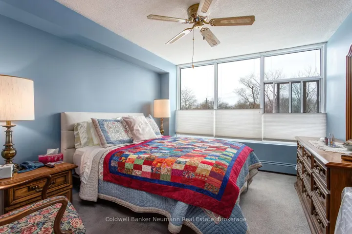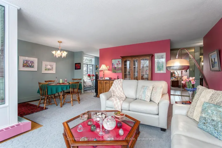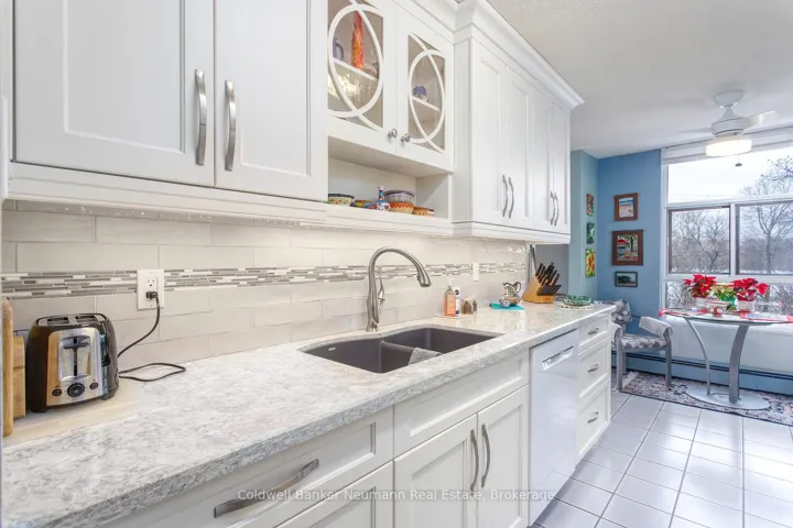 +"PublicRemarks": "Welcome to this stunning and spacious 3-bedroom, 2-full bathroom corner unit in the highly sought-after Woodlawn Tower Tree Condominiums! This beautifully updated condo features a newer Sutcliffe kitchen, complete with gleaming quartz countertops, soft-closing drawers, a newer appliance package (dishwasher, stove, fridge, and new microwave 2026), a stylish new backsplash, and under-cabinet lighting that adds warmth and functionality to the space. Both bathrooms have been refreshed with new toilets, and the guest bathroom showcases a newer bathtub surround. Comfort is a priority throughout the home, with new ceiling fans in all bedrooms and custom-built closet organizers in two of the bedroom closets. The wall A/C unit is only five years old, and the seller is also including two portable A/C units to ensure your comfort all summer long. Step outside to the large, private enclosed balcony, perfect for enjoying three seasons of peaceful relaxation. Overlooking the scenic walking trails of Riverside Park, the balcony provides a serene, tree-shaded retreat filled with birdsong. From the living room, you'll also enjoy views of the tennis courts and pool area. Tastefully decorated throughout, the unit features laminate flooring and ceramic tile in high-traffic areas. The primary bedroom includes laminate floors and its own 3-piece ensuite bathroom. Additional highlights include ample storage, en-suite laundry, and all appliances included for your convenience. Condo fees cover heat, water, parking, and access to all of the wonderful amenities this well-maintained complex offers. Book your private showing today-you will not be disappointed!"