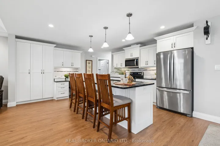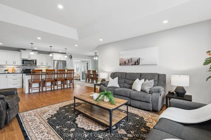 +"PublicRemarks": "Welcome to 480 Grand Trunk Street, a beautifully maintained 2018-built bungalow offering 1,633 sq ft of thoughtfully designed living space in a quiet, family-friendly neighbourhood. Backing onto open farmland, this home delivers privacy, peaceful views, and a lifestyle that's hard to find. Step inside and you're welcomed by a bright, open-concept layout featuring durable laminate flooring throughout the main level. The kitchen is the heart of the home, complete with granite countertops, a large centre island, stainless steel appliances, under-cabinet lighting, pot lights, and a built-in desk area perfect for everyday convenience. The living room is warm and inviting, showcasing coffered ceilings, large windows that flood the space with natural light, and a cozy gas fireplace. The dining area flows seamlessly into a charming three-season room, creating the perfect transition to outdoor living with a covered porch, composite deck, and gas BBQ hookup. With no rear neighbours, you'll enjoy uninterrupted views of open farmland and ultimate backyard privacy. The main floor features two spacious bedrooms, including a primary suite with a walk-in closet and private 3-piece ensuite, along with convenient main floor laundry for true one-level living. Downstairs, the fully finished basement expands your space with a large recreation room featuring a second gas fireplace, a third bedroom with a walk-in closet and above-grade window, and a 3-piece bathroom. There is also a workshop/utility area and cold cellar, offering excellent storage and flexibility. This home also stands out with thoughtful accessibility features, including a chair lift in the garage and another providing access to the basement, making it ideal for multi-generational living or those planning for long-term comfort. Complete with a double car garage and a driveway that accommodates up to four vehicles, this property offers both convenience and functionality."