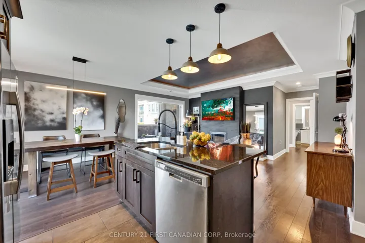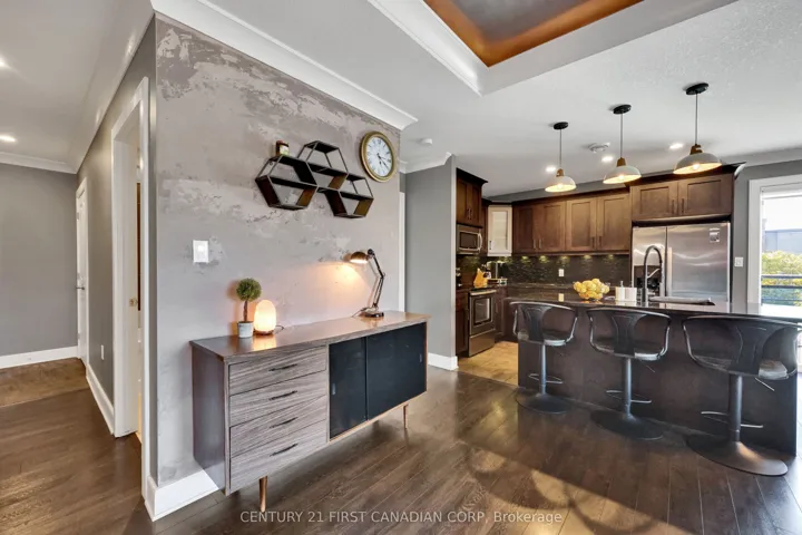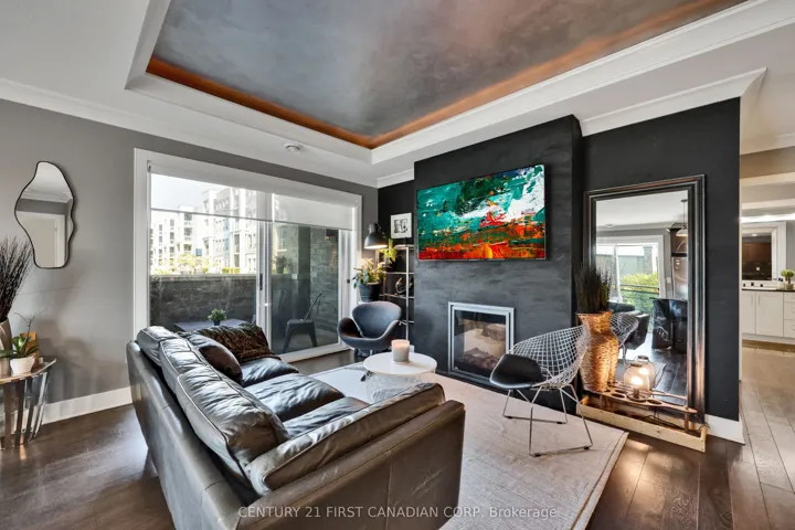 +"PublicRemarks": "Bright Open Executive 2 Bedroom, 2 Bathroom Luxury Condo with an Unique 3-Patio Door Floor Plan, 1 Underground Parking Space (#68), 1 Above Ground (Common) Parking Spot plus Large Storage Locker! All the Finishings You Would Come to Expect in a Luxury High-end Condo. Gourmet Kitchen, Custom Cabinetry, Island, Granite Countertops throughout, Stainless Steel Appliances, Ensuite Laundry. Kitchen Opens to Dining and Living Room with Tiles, Featured Fireplace. Master Bedroom, Ensuite Bathroom with Generous Walk-In Shower and Large Walk-in Closet. Private Nice-Sized 2nd Guest Bedroom is Located on the Other End of the Condo with Juliet Balcony. Lease + Personal Hydro."