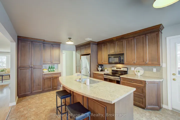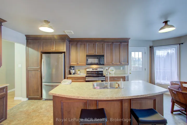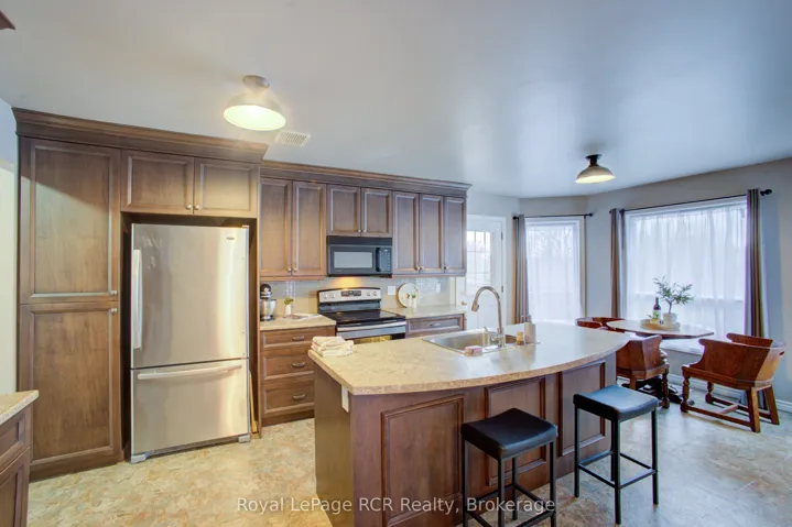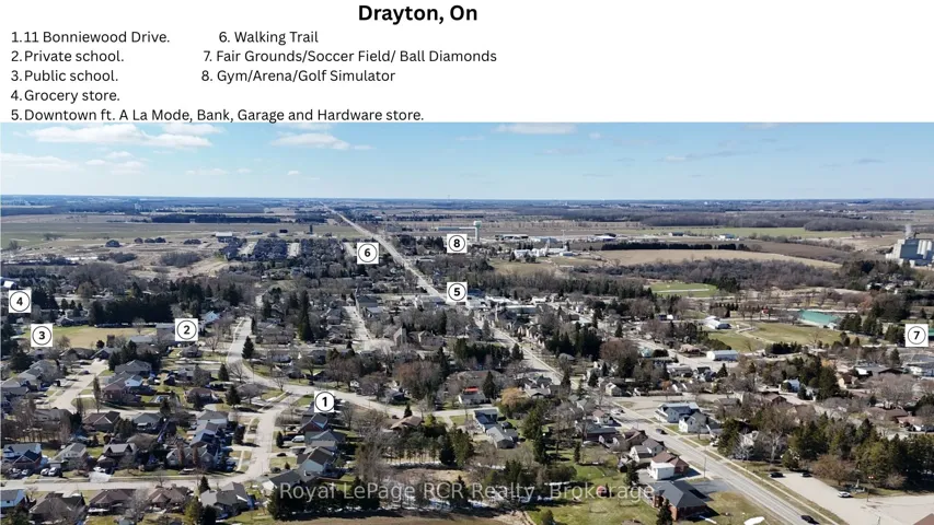 +"PublicRemarks": "Welcome to 11 Bonniewood Drive in Drayton -- an impressive move-in-ready all-brick raised bungalow on a quiet, sought-after cul-de-sac. Offering nearly 2,500 sq. ft. of comfortable living space on a large, nearly quarter-acre lot (74 x 168 ft), this home features a welcoming front yard with mature maple trees and a double driveway. A spacious 12-foot entranceway leads to a bright living room with south-facing bay windows and a cozy gas fireplace. The well-appointed kitchen offers abundant cabinetry, a breakfast bar island, and north-facing bay windows overlooking the backyard. It also provides direct access to a balcony with a gas hookup-ideal for entertaining. The main level includes three well-sized bedrooms with generous closets, including his and hers in the primary bedroom, along with a fully updated 5-piece bathroom featuring ceramic tile. The finished lower level is filled with natural light and offers excellent versatility. A large recreation or second living room includes a gas fireplace and a walkout to the backyard. A private primary retreat features a walk-in closet and a 4-piece ensuite. The fully enclosed backyard includes a shed, fire pit, playset, and garden that can double as a skating rink in winter, plus perennials, berry bushes (raspberry, rhubarb, strawberry, elderberry), and pear trees. The lot stands out for its size, layout, and landscaping, complemented by updates including a new front door, windows, garage door, and enhanced grounds. Additional features include a 19 x 24 attached double garage with a gas hookup, inside access, and a backup generator. Located near schools, parks, the arena, church, grocery store, and restaurants in a quiet, family-friendly neighbourhood."