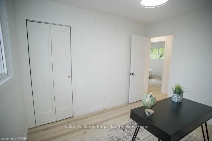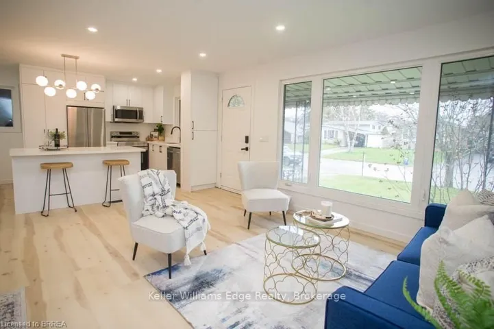 +"PublicRemarks": "Meticulously and thoughtfully renovated bungalow in Brantford's desirable North end, offering a stunning in-law suite with two self-contained living spaces, separate entrances, and separate full-size in-suite laundry. A double-wide driveway and carport with additional storage provide parking for up to 5 vehicles, all set on a quiet street close to parks, shopping, and everyday amenities. This beautifully updated 3+2 bedroom, 3-bathroom home offers over 2000sf of finished living space, designed with a cohesive, modern aesthetic throughout. The main level features a bright open-concept layout with large windows, luxury plank flooring, and a refined kitchen complete with quartz countertops, stainless steel appliances, a dishwasher, and an island with seating. Three well-proportioned bedrooms and a fully renovated bathroom with double vanity and glass shower complete the upper level, delivering both comfort and style. Full-size in-suite laundry is conveniently located in the main floor kitchen. The lower level presents a fully finished in-law suite with its own separate entrance, high ceilings, and exceptional natural light, rare for a lower level. This spacious 2-bedroom layout with 2 full 3-piece bathrooms features custom tile showers, a modern kitchen with quartz counters and stainless steel appliances, an open living area, and separate full-size in-suite laundry. The primary bedroom includes a private ensuite and egress window, offering a well-designed and functional space. Additional highlights include new A/C (2025) and a large, fenced backyard ideal for outdoor enjoyment. Conveniently located just minutes to Highway 403, schools, parks, and a wide range of amenities. Upstairs tenanted at $2100/month, lower unit vacant May 1st. A turnkey property offering flexibility for families, multi-generational living, or those seeking a beautifully finished home with additional living space. Photos prior to tenancy."