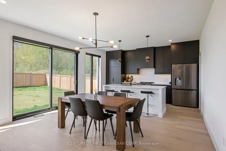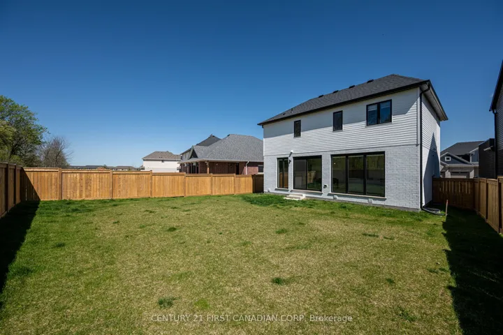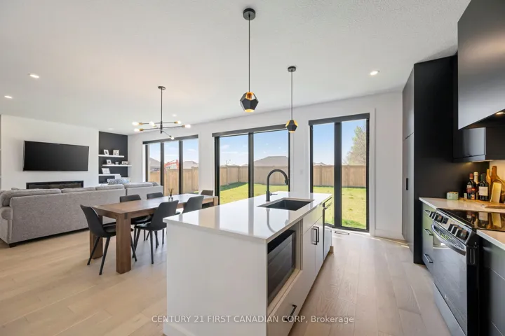 +"PublicRemarks": "Welcome to this stunning custom-built home in the prestigious Lion's Gate subdivision on the edge of Mount Brydges. Ideally situated on a desirable corner lot in a quiet setting. This beautifully designed home offers 2057 sq ft of thoughtfully designed living space blending luxury, comfort, and functionality. The gourmet Chef's kitchen is the heart of the home, featuring granite countertops, Brazilian tile flooring and backsplash, premium stainless steel appliances, a garburator, and a large island with breakfast bar-perfect for everyday living and entertaining. The formal dining area flows seamlessly into the spacious great room, highlighted by soaring ceilings and cozy gas fireplace. Upstairs you'll find a versatile loft space and the primary suite offering a peaceful retreat with spa-inspired, 5-piece ensuite and a custom walk-in closet. There are three additional bedrooms and a full 3-piece bath. The fully finished lower level expands your living space with a large family room, an additional bedroom and another 3-pc bathroom - perfect for guests or extended family. Step outside to your private, fully fenced, beautifully landscaped backyard oasis complete with an in-ground heated pool - ideal for relaxing or hosting memorable gatherings. This is a beautifully appointed home offering style, space and comfort in a desirable community with an easy commute to either North or South London (approx 15-20 min)"