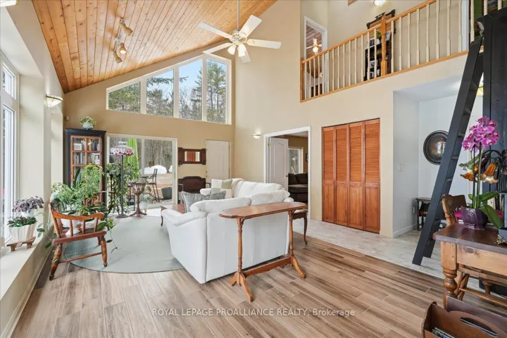 +"PublicRemarks": "Set on one of Ontario's most iconic lakes - Mazinaw Lake, this year-round home offers a front row seat to one of the region's most unforgettable views, Bon Echo Rock rising across the lake. Tucked into a quiet, tree-lined setting on a municipally maintained road, the property strikes a rare balance of privacy, natural beauty, and easy access in every season. Built with lasting quality in mind, the home features ICF construction and in-floor radiant heating, creating a comfortable and energy-conscious lifestyle. The main level is designed for both everyday living and entertaining, with spacious principal rooms, a well-appointed kitchen with quartz countertops, and a dedicated dining area. A cedar-lined sunroom extends the living space and offers a relaxed place to unwind while taking in the surrounding landscape. Upstairs, the primary suite includes a walk-in closet and private ensuite, alongside two additional bedrooms and a full bath. The layout offers flexibility for families or guests, with additional space on the main floor that could serve as a home office or optional bedroom. The waterfront is equally impressive, with a clean shoreline, hard sand entry, and deep water off the dock, ideal for swimming, boating, and fishing. Known for its clarity and natural beauty, Mazinaw Lake is home to Bon Echo Provincial Park, offering miles of shoreline to explore, scenic hiking trails, and two sandy beaches just steps away from this rare gem!"