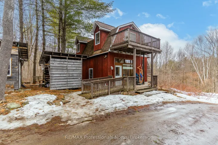 +"PublicRemarks": "Welcome to your private escape in the heart of Haliburton County-where nature, space, and lifestyle come together on approximately 46 acres of woodland currently enrolled in the Managed Forest Incentive Program. With trails to explore and a a stream at the rear of the property, this is the ultimate setting for those seeking the true cottage country experience. This unique off-grid year round home is designed for comfort, functionality, and gathering. Step inside through the oversized mudroom-perfect for storing all your outdoor gear-and into a spacious dining area warmed by a cozy woodstove. The adjoining living and family room offers a welcoming space to relax, with direct access to a generous 3-season solarium. The main floor also features a 2 pc bath and a large country kitchen complete with ample storage, stainless steel appliances, a separate bar sink, and its own walkout to the exterior-ideal for entertaining and everyday living. Upstairs, the second level offers four spacious bedrooms, a shared 5-pc bathroom, and a versatile common or gaming area-perfect for kids or additional lounging space. The third-floor loft is dedicated to a private primary retreat, featuring a 4-pc ensuite with an oversized walk-in shower complete with dual shower heads for a spa-like experience. As an added bonus, the accessory building expands your living options with two decks, a main floor laundry shared with main house, living space, and bath, plus an upper in-law suite with its own kitchen, bath, and living area-ideal for extended family or guests. This is a rare opportunity to embrace Haliburton life at its finest-offering a self-sufficient, off-grid lifestyle with the potential to connect to hydro at the road in the future. A true homestead setting perfect for large or multi-generational families looking to live, explore, and unwind. Don't miss your chance to experience this one-of-a-kind property and the lifestyle that comes with it."