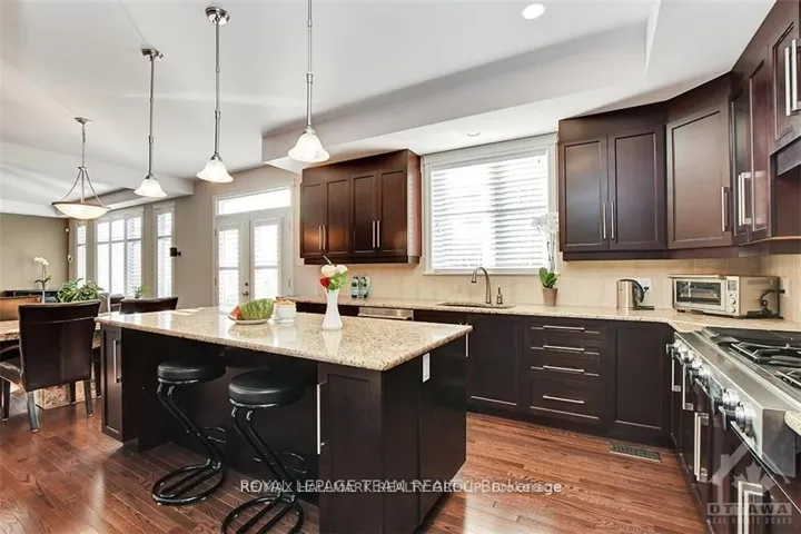 +"PublicRemarks": "Stunning Larco-built residence in the Solera community of Hunt Club Park. Set on one of the finest lots in the neighbourhood, this home offers exceptional privacy and tranquility for your family, along with a fully fenced yard and walkout access from your very own cinema-style home theatre retreat.The upgraded Orvietto II model boasts over 4,000 square feet of impressive living space, featuring a beautifully designed custom kitchen by Delaurier, complete with a large statement island, premium Jenn Air appliances, and elegant California shutters throughout.Upstairs, you'll find a charming loft-style home office, a highly desirable second-floor laundry room, and four generously sized bedrooms-each with access to full bathrooms. The primary suite includes dual walk-in closets and a luxurious spa-inspired ensuite.This remarkable home perfectly blends luxury, comfort, and family living. Ideally located in one of Ottawa's hidden gems, it's just minutes from the airport, top-rated schools, and convenient shopping."