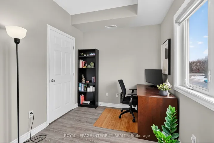 +"PublicRemarks": "This 1 Bed + Den, corner-suite features 9-foot ceilings and wrap-around windows that flood the space with plenty of natural light. The rare layout includes two private balconies offering significantly more outdoor space than typical units in the area. The interior was recently refreshed with new flooring, modern lighting, and brand-new stainless steel appliances. The den functions as a bright office or even a second bedroom with its own walk-out. Located in Mimico's waterfront community, the building offers 24/7 security, an indoor pool, gym, and sauna. This move-in ready suite includes one parking spot and one locker."